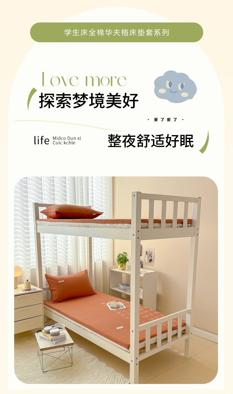当前位置: 91家纺网 > 商品网购 > 床垫/床褥 > 眠博士 2025新款全棉纯棉华夫格学生床床垫套床垫套单件单床垫套 华夫格床垫套 焦糖