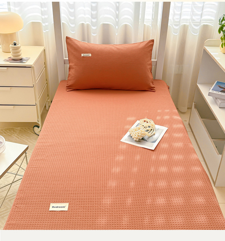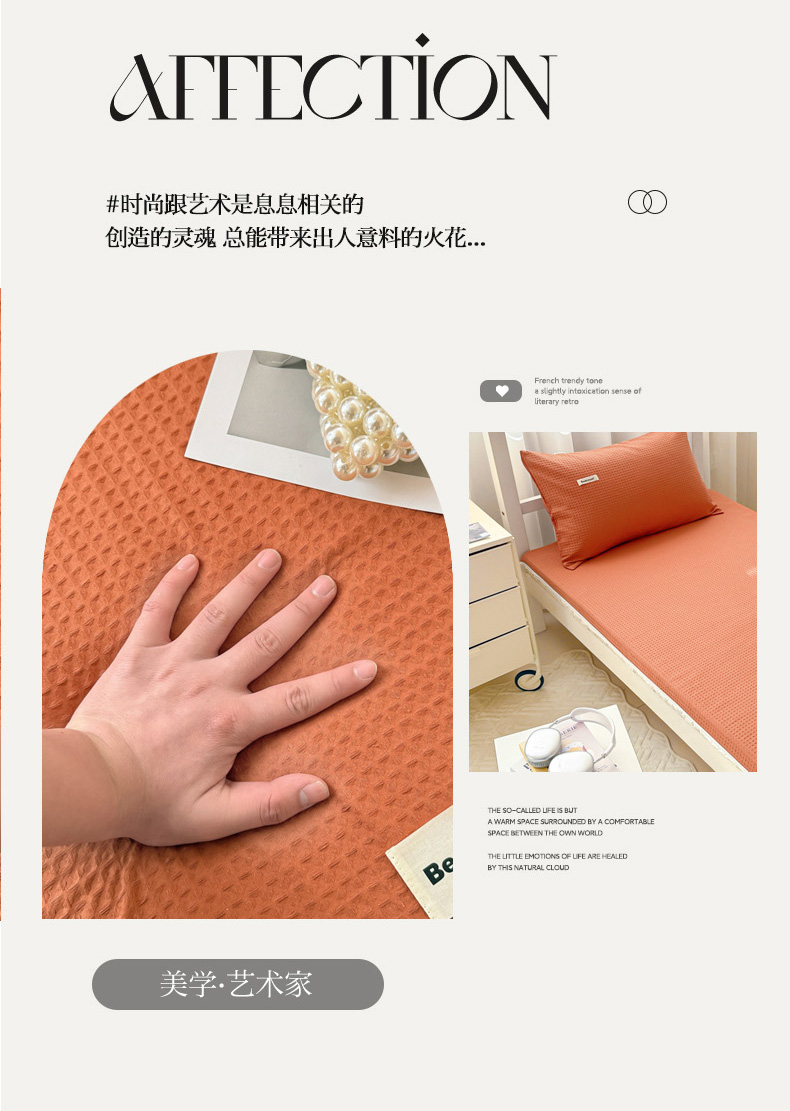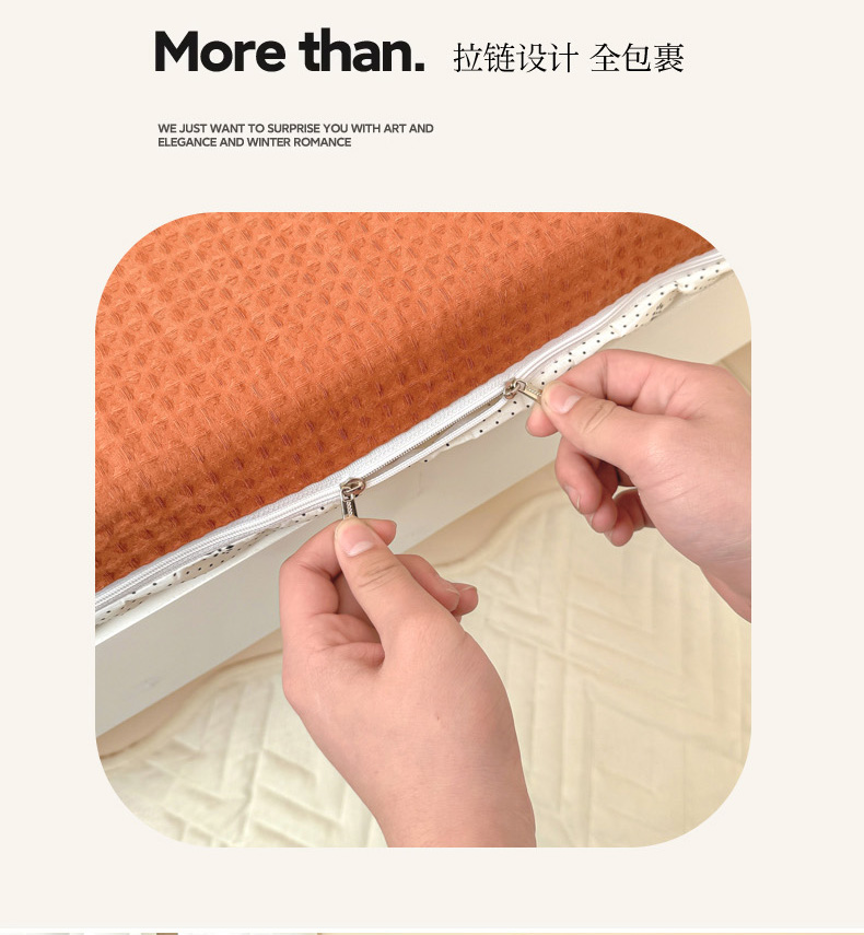 • 91家纺网 家纺一手货源 找家纺 眠博士 2025新款全棉纯棉华夫格学生床床垫套床垫套单件单床垫套 华夫格床垫套 焦糖