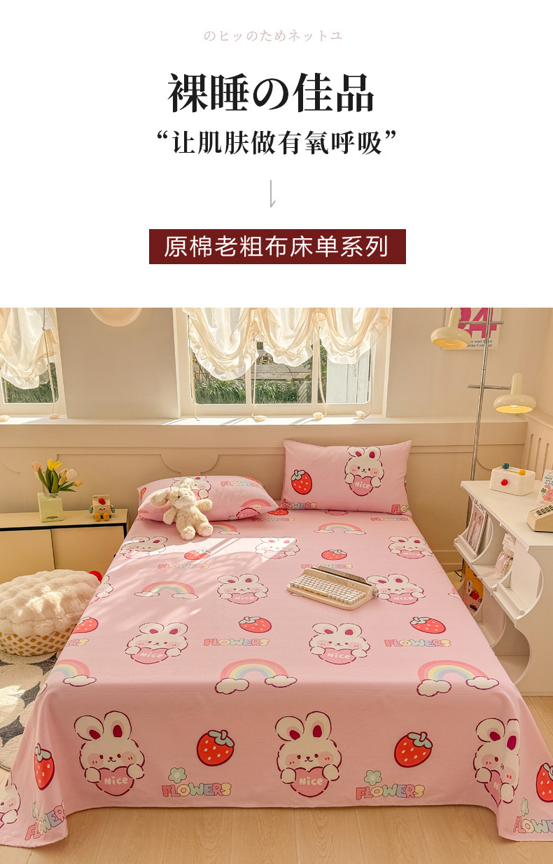 • 91家纺网 家纺一手货源 找家纺 爱彼家纺 2025新款原棉老粗布床单床单单件凉席席子 草莓免
