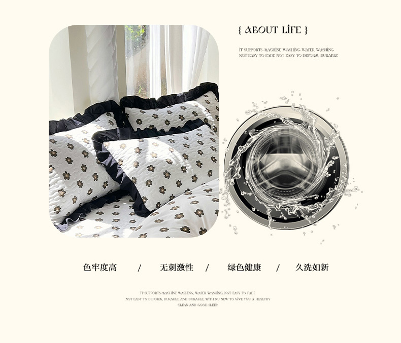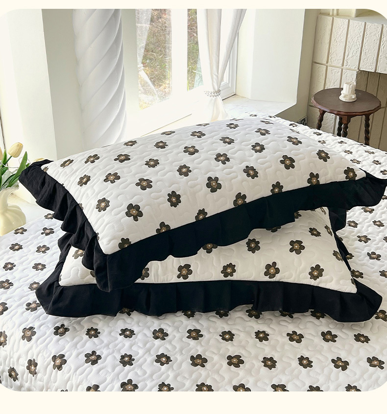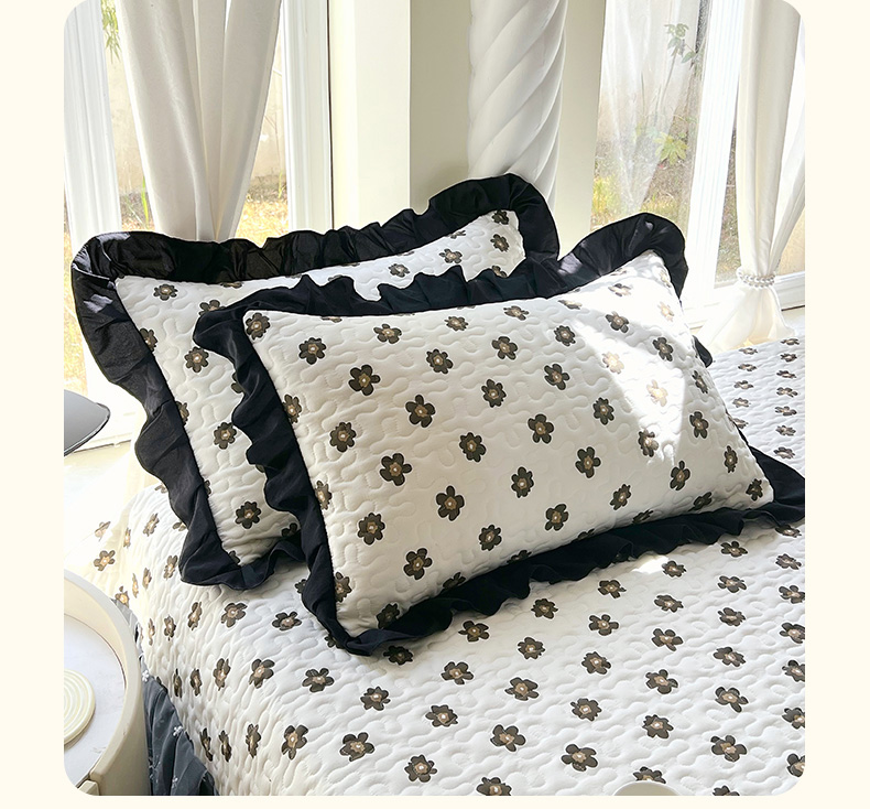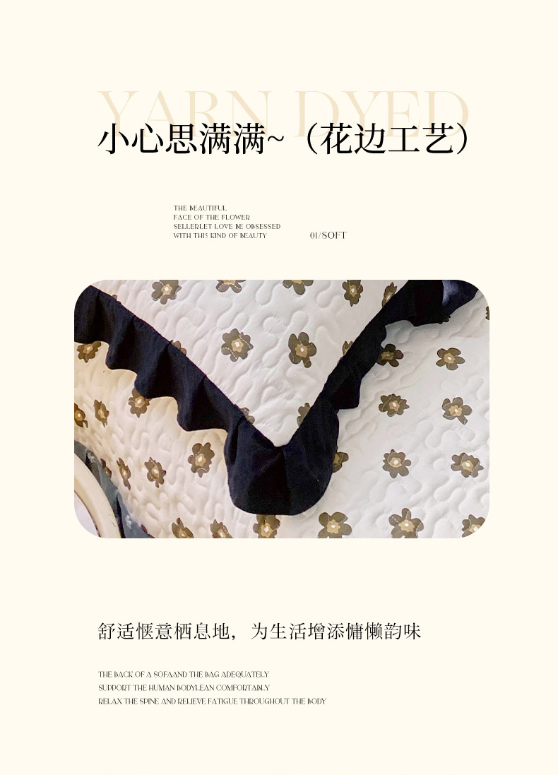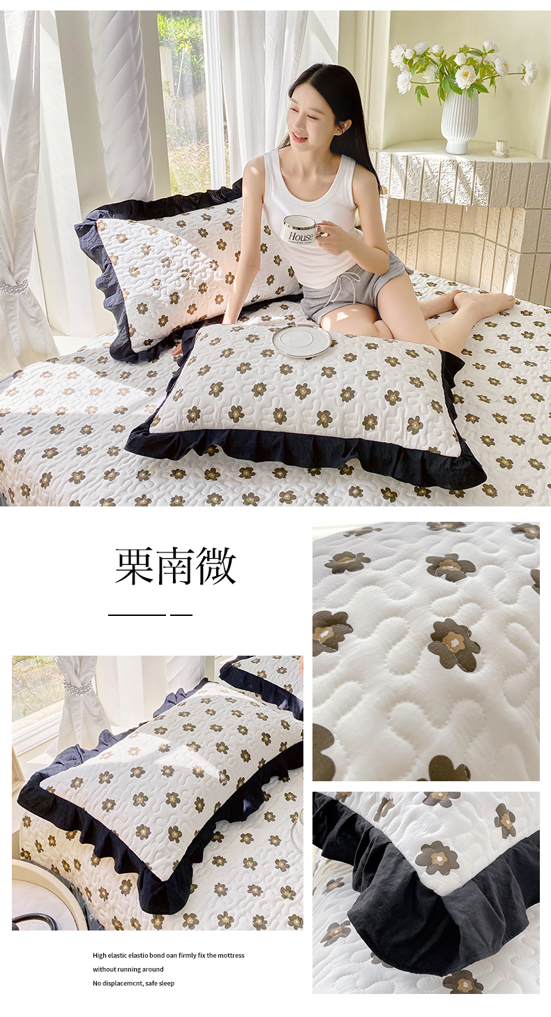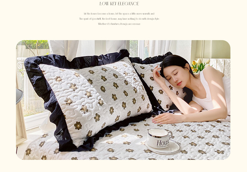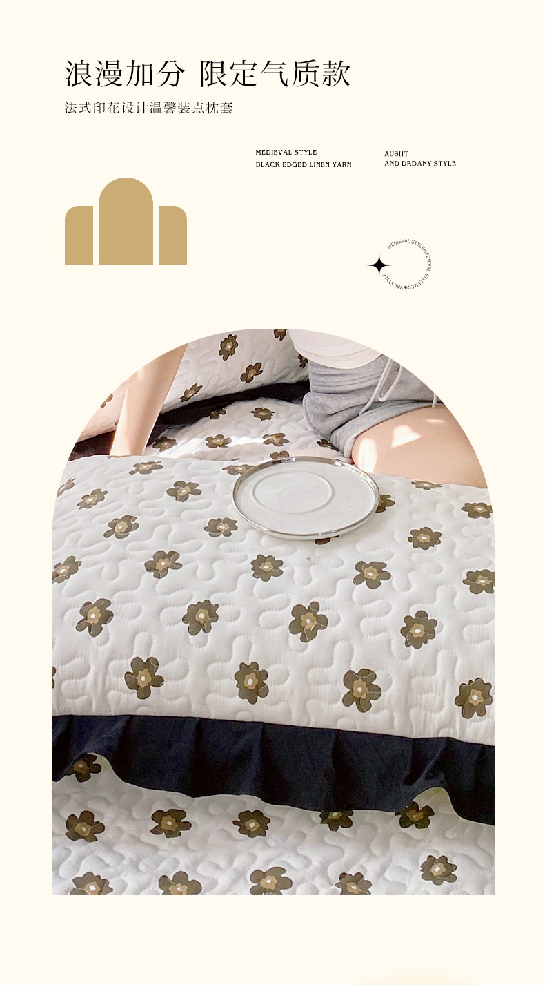 商品名称:雨彤家纺2025新款赫本风水洗棉夹棉花边枕套 栗南微