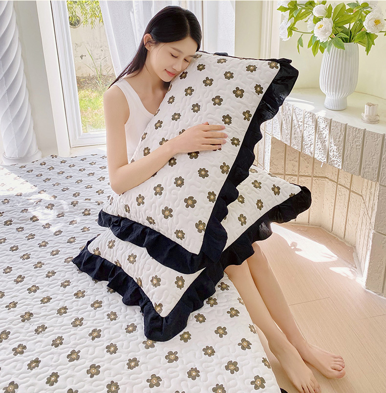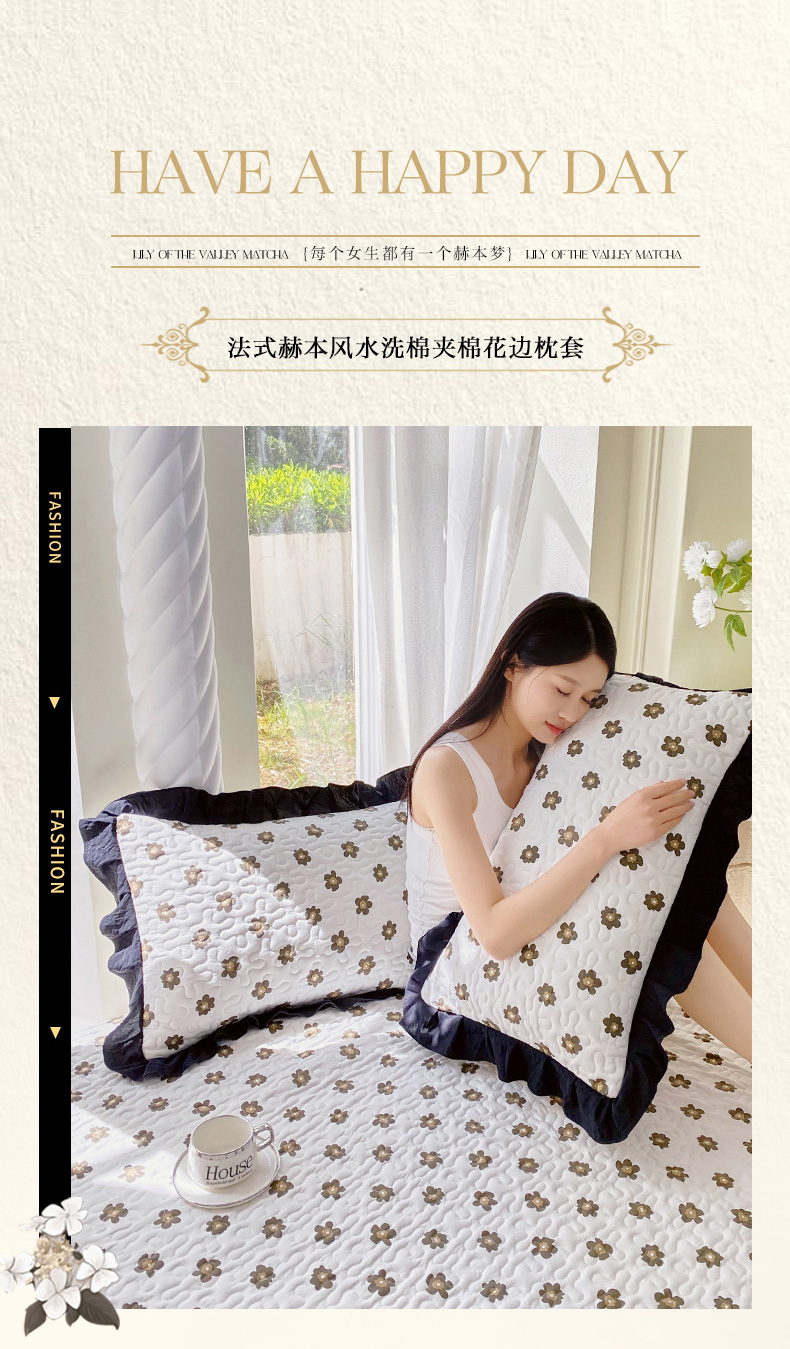 雨彤家纺2025新款赫本风水洗棉夹棉花边枕套 栗南微
