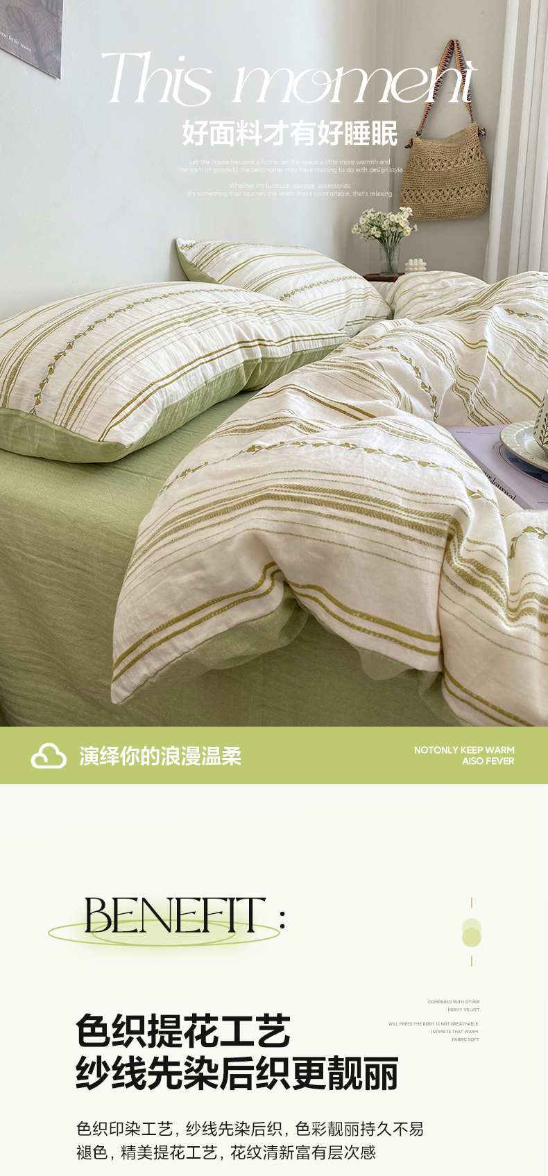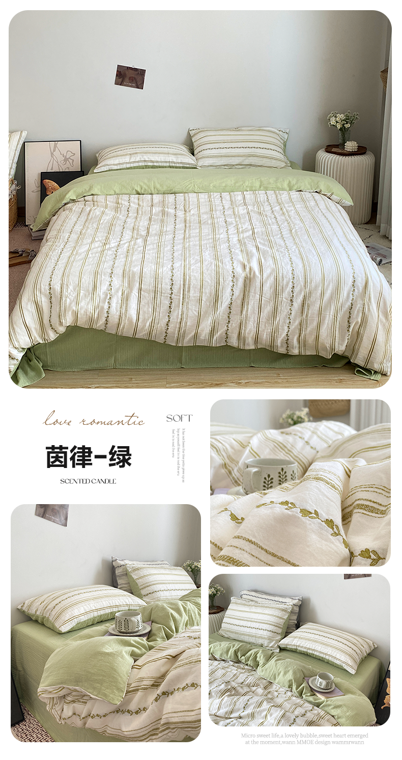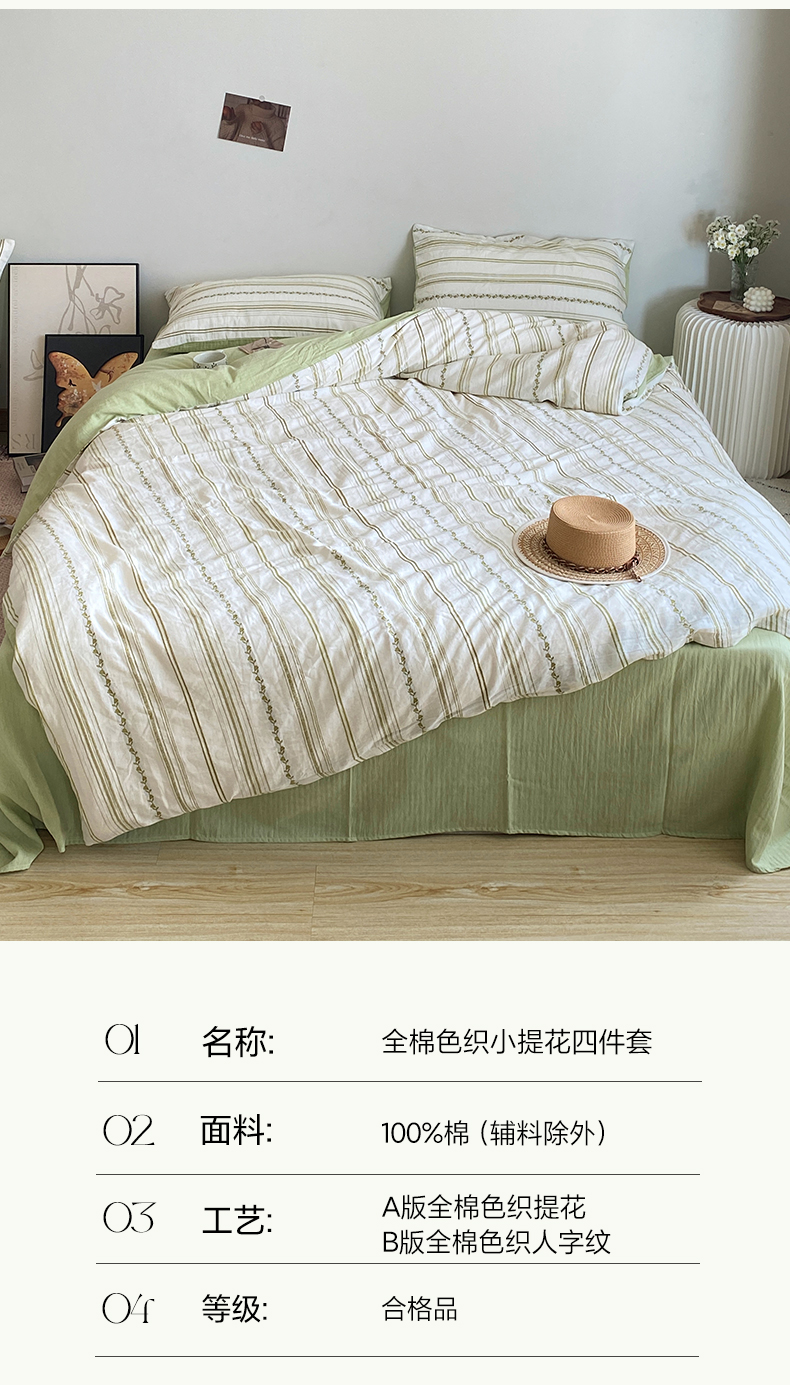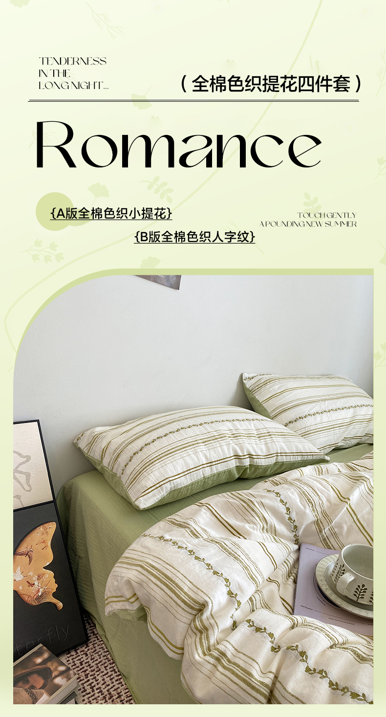 当前位置: 91家纺网 > 商品网购 > 床品套件 > 四件套 > 全棉普通四件套 > 艾咪-Amy ntmy 2025新款全棉色织小提花四件套-茵律 茵律-绿