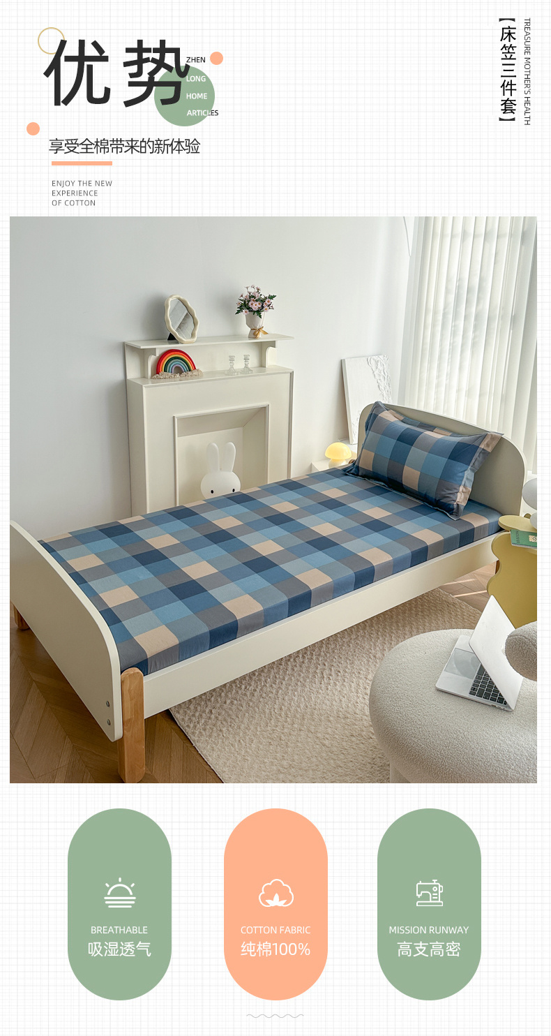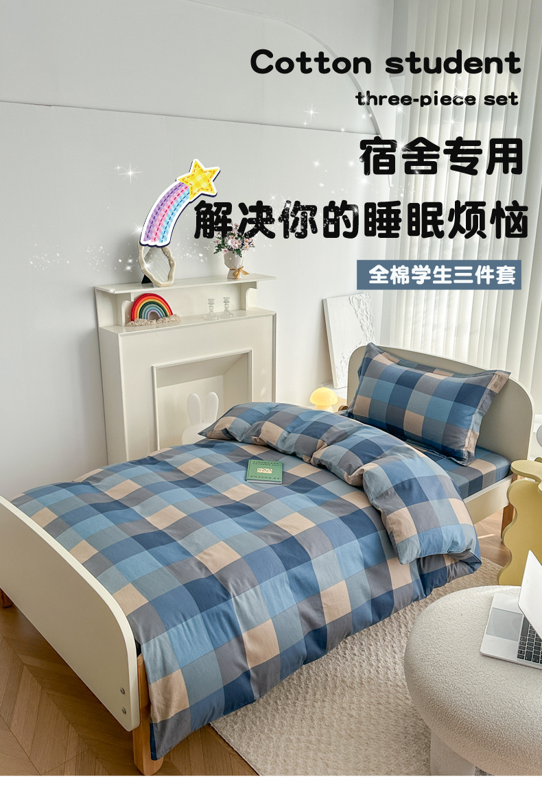 当前位置: 91家纺网 > 商品网购 > 床品套件 > 三件套 > 凌云家纺 2025新款13372全棉学生床笠款三件套 上下铺六件套一整套 灰蓝格