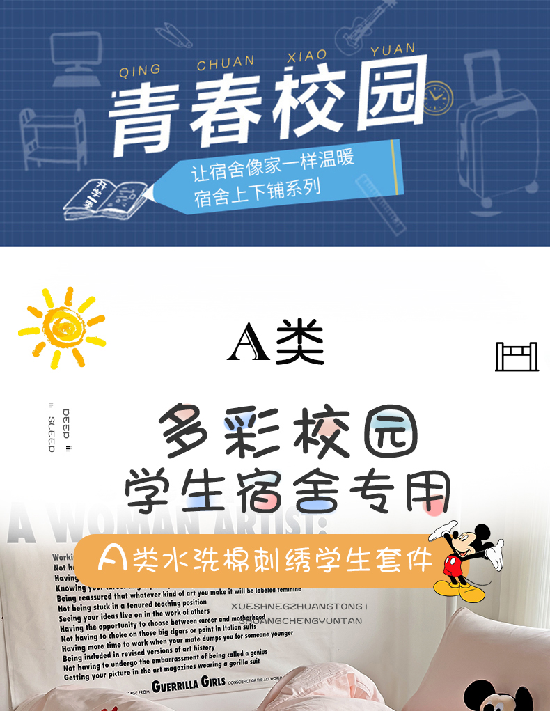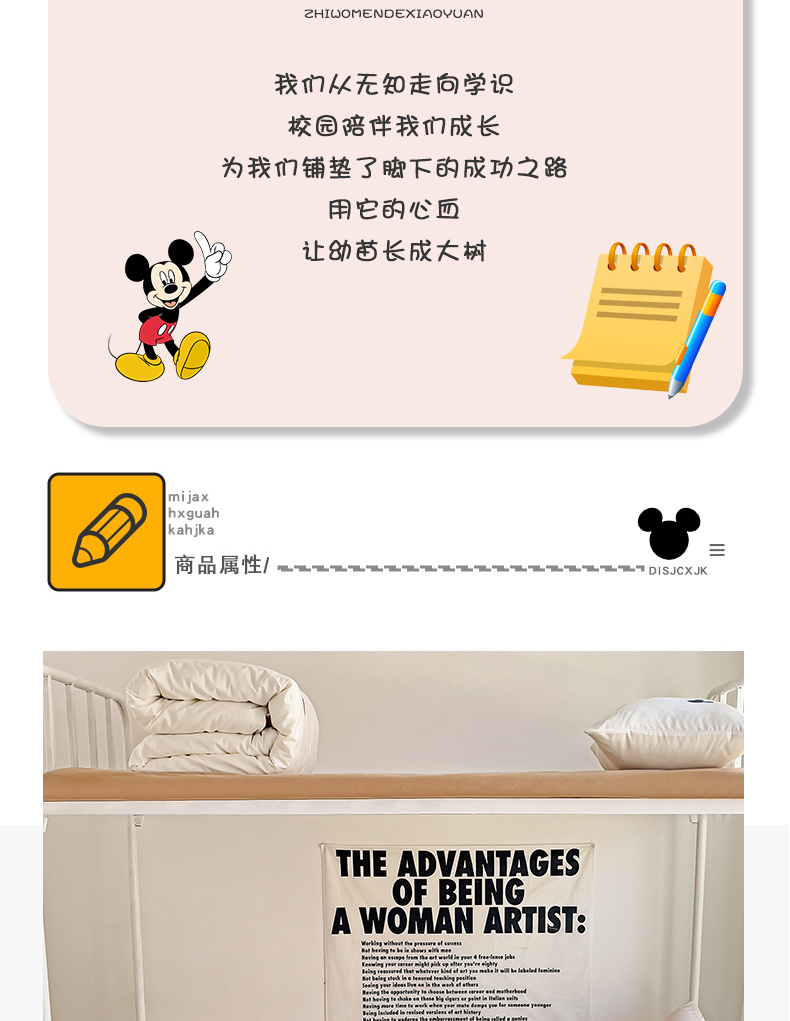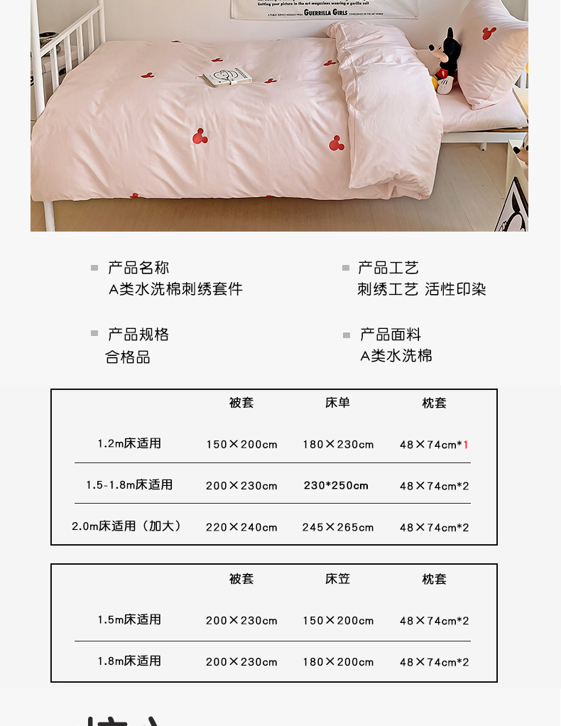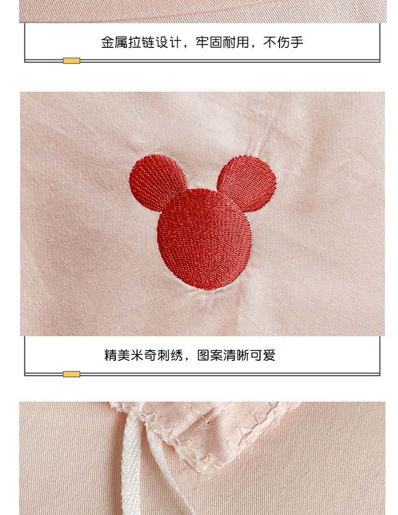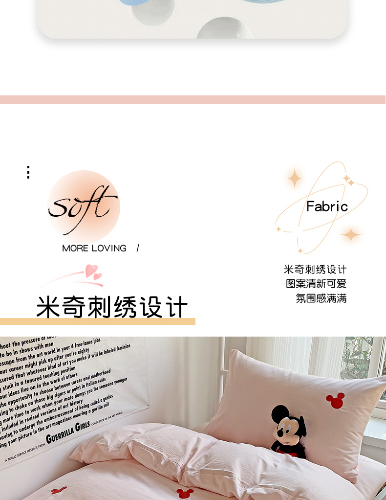 商品名称:静家居-简约原创家纺 2025新款40sA类水洗棉米奇刺绣系列学生三件套 米奇粉
