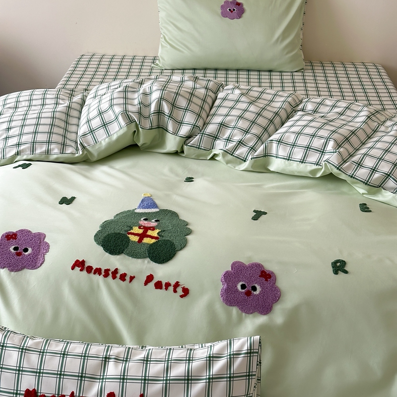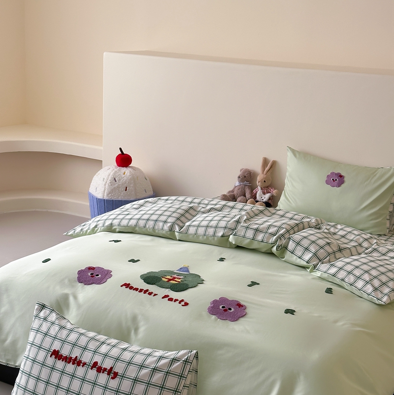 商品名称:(总)时光里2025新款100S卡通风贡缎毛巾绣四件套-第二波