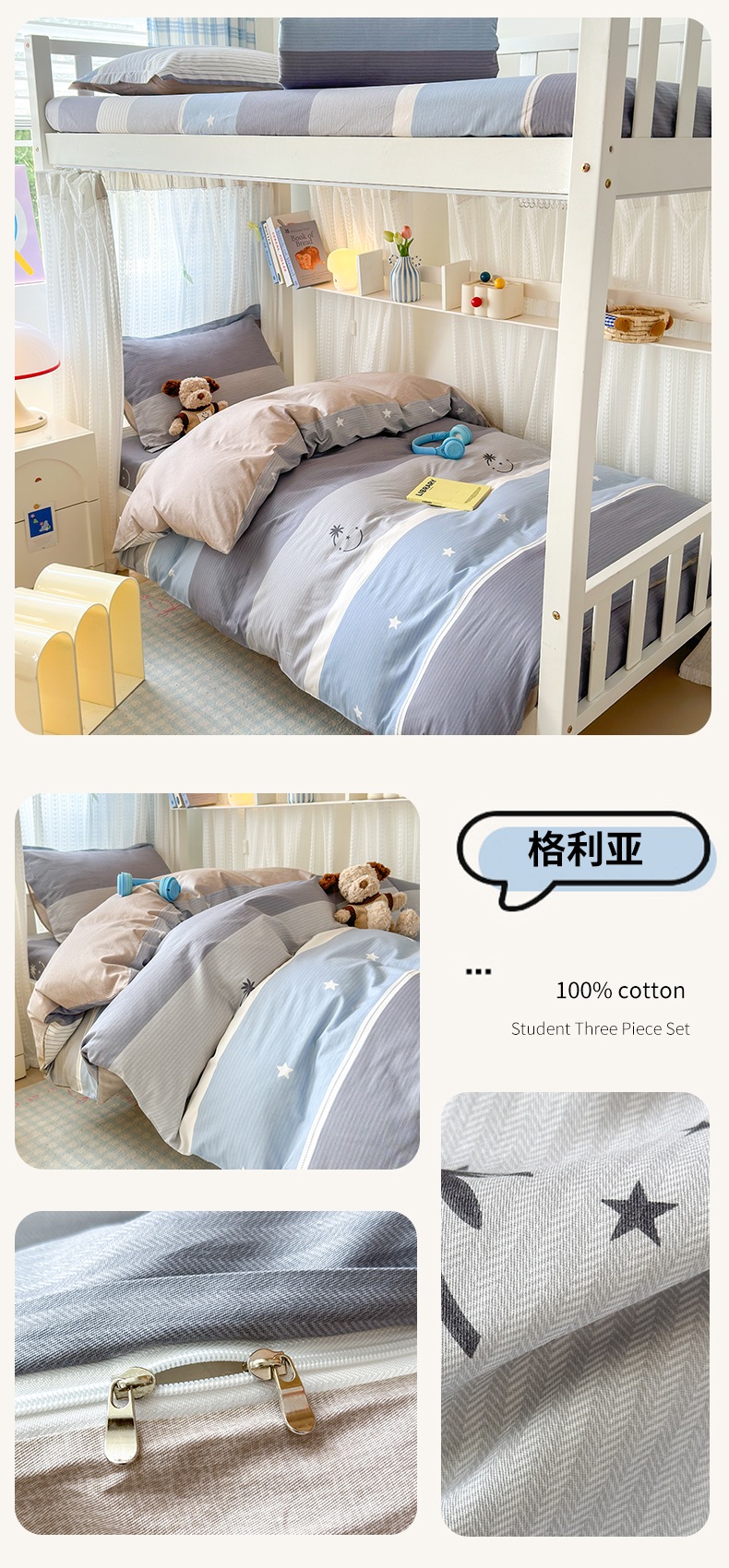 商品名称:拾物记 2025新款A类棉学生印花三件套 格利亚