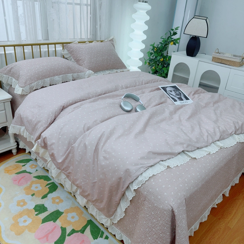 商品名称:暖居 2025春夏款高温砂洗棉花床盖三件套被套四件套同款纯棉夏被空调被四季 小樱桃-粉