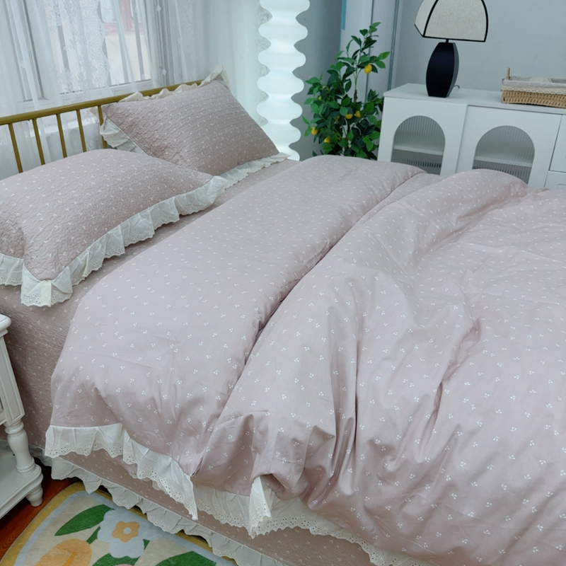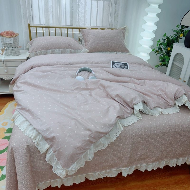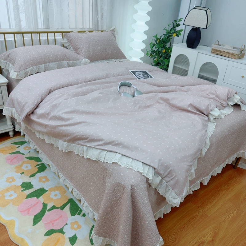 暖居 2025春夏款高温砂洗棉花床盖三件套被套四件套同款纯棉夏被空调被四季 小樱桃-粉