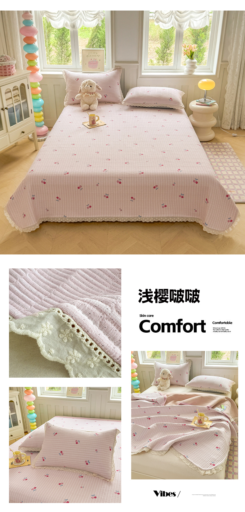 商品名称:源舜 2025新款全棉法式花边云感双层纱全棉花边床盖三件套 浅樱啵啵