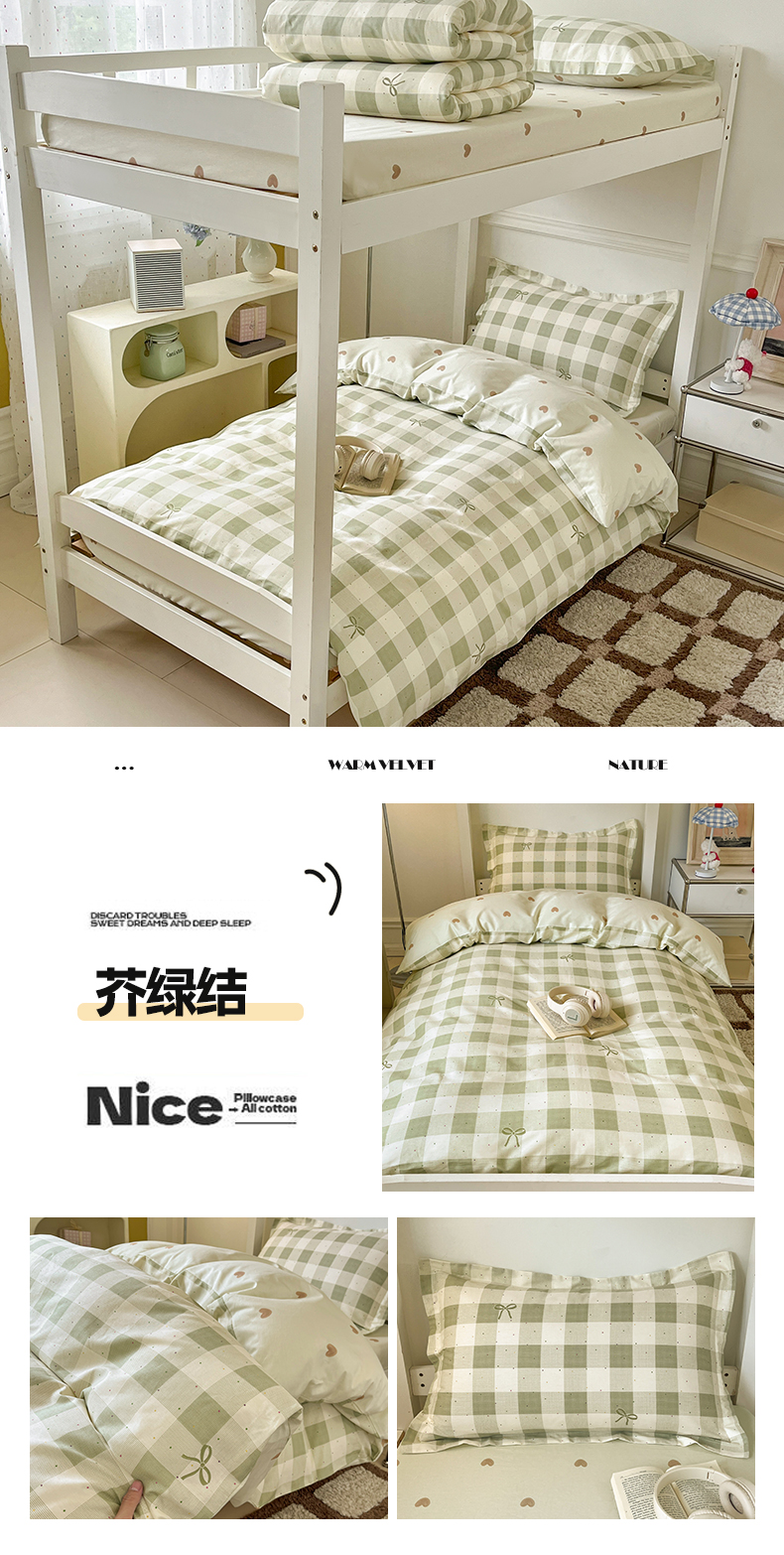 当前位置: 91家纺网 > 商品网购 > 床品套件 > 三件套 > 涵宸家纺 2025新款学生图-全棉印花-甜系三件套四件套 A芥绿结