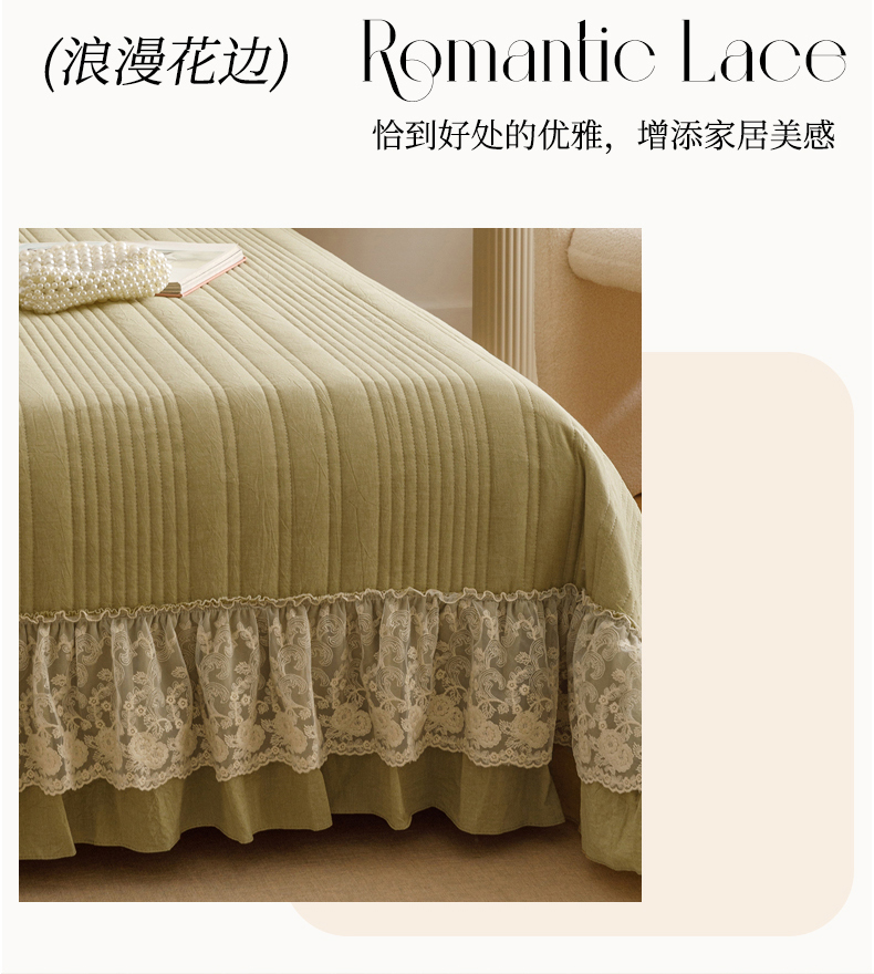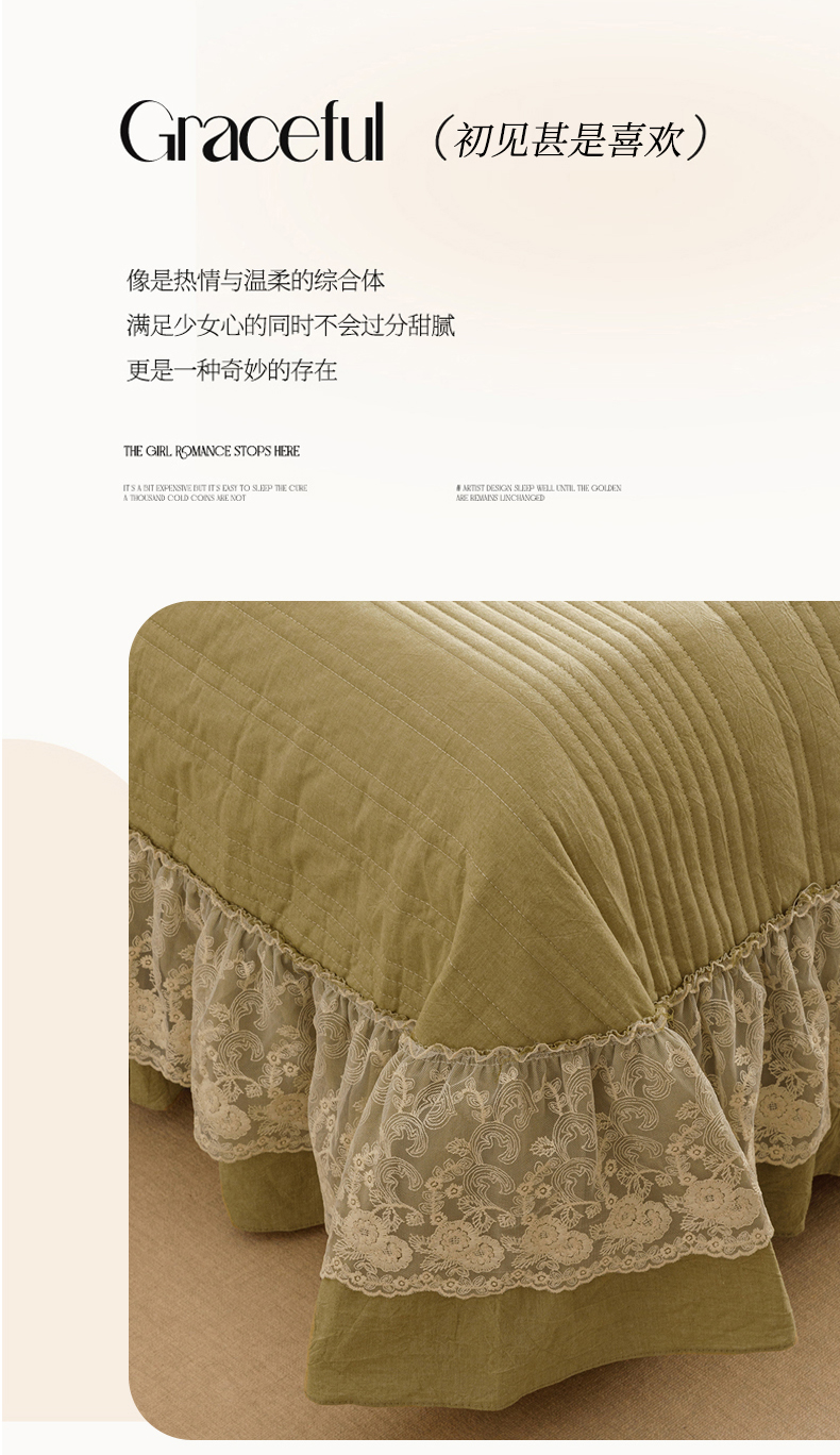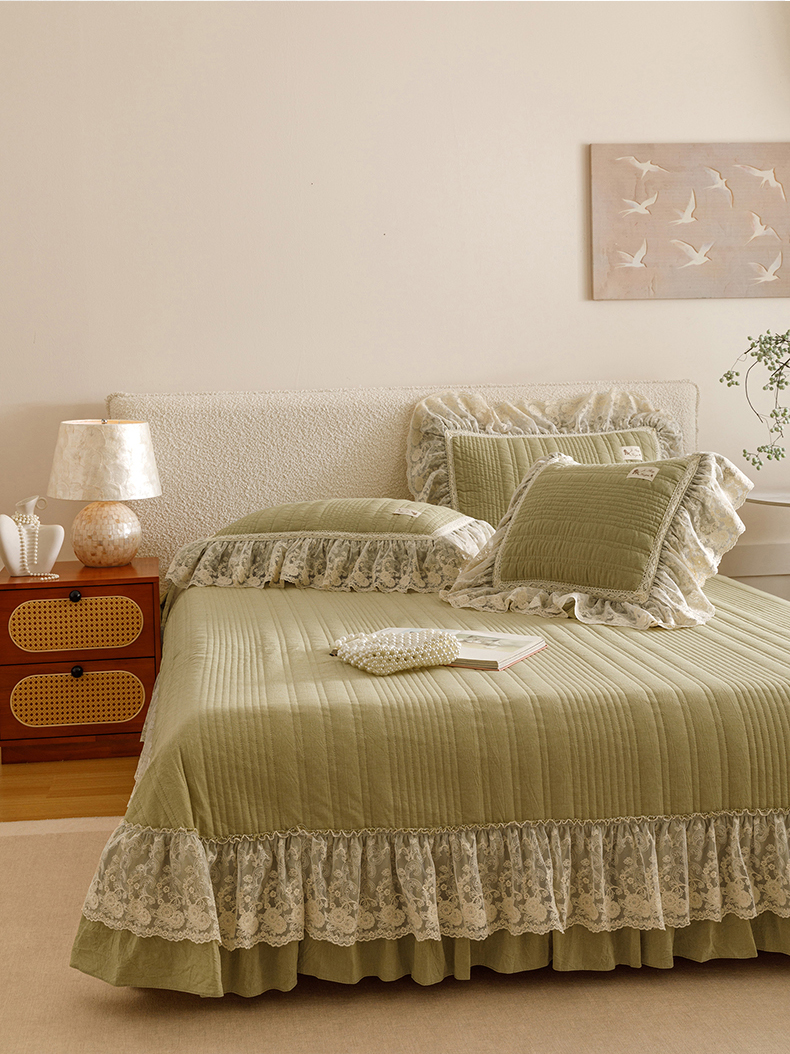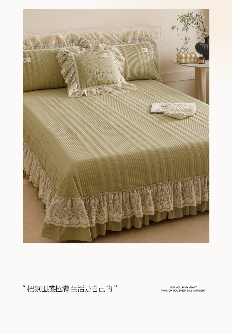 • 91家纺网 家纺一手货源 找家纺 菊上家纺 2025新款全棉色织水洗棉洛丽塔公主系列单床盖 橄榄绿
