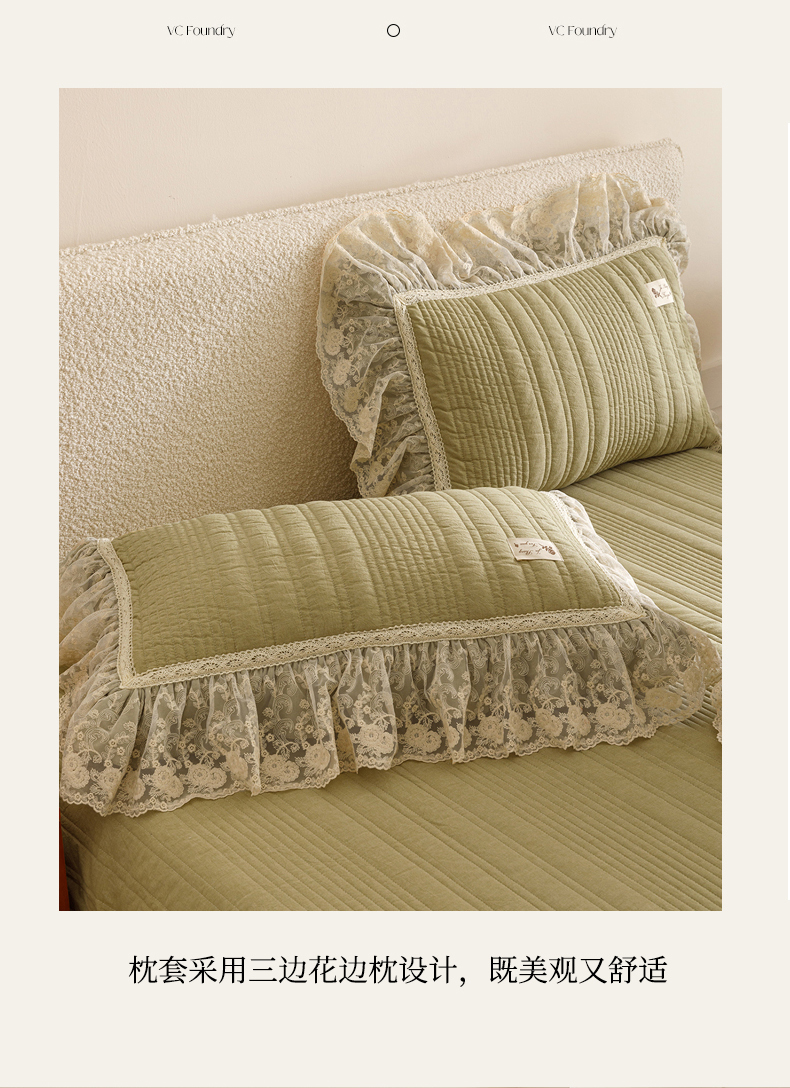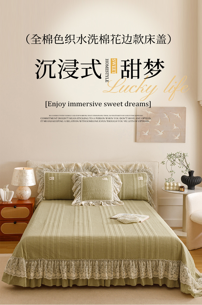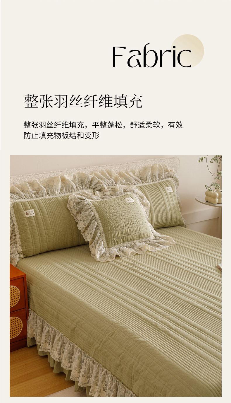• 91家纺网 家纺一手货源 找家纺 菊上家纺 2025新款全棉色织水洗棉洛丽塔公主系列单床盖 橄榄绿