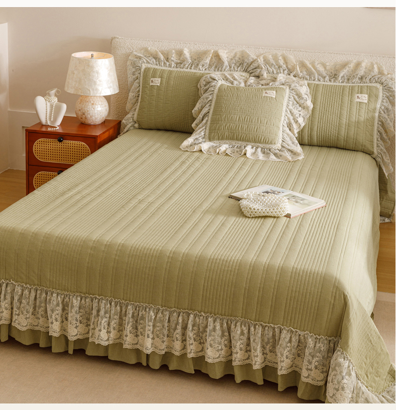 2025新款全棉色织水洗棉洛丽塔公主系列单床盖 橄榄绿