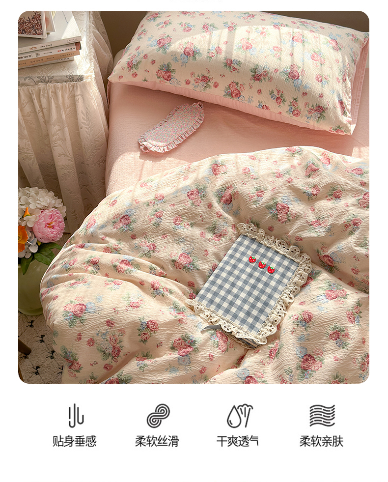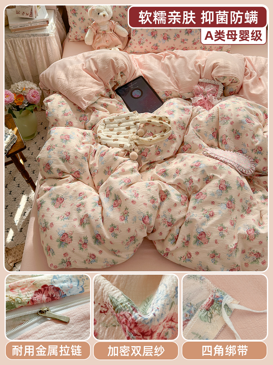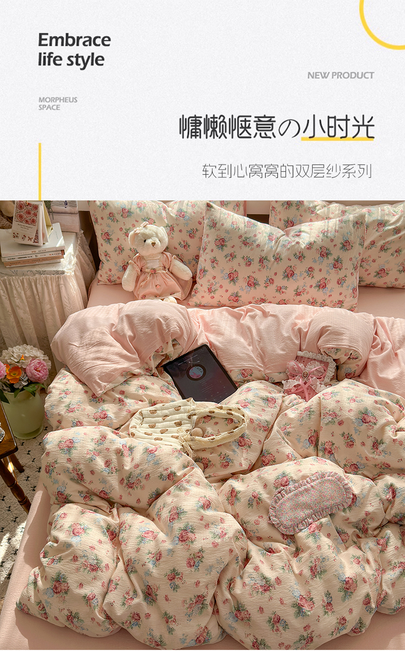 当前位置: 91家纺网 > 商品网购 > 床品套件 > 四件套 > 其它四件套 > 丽美人家纺2025新款A类软糯皱皱纱四件套 安娜