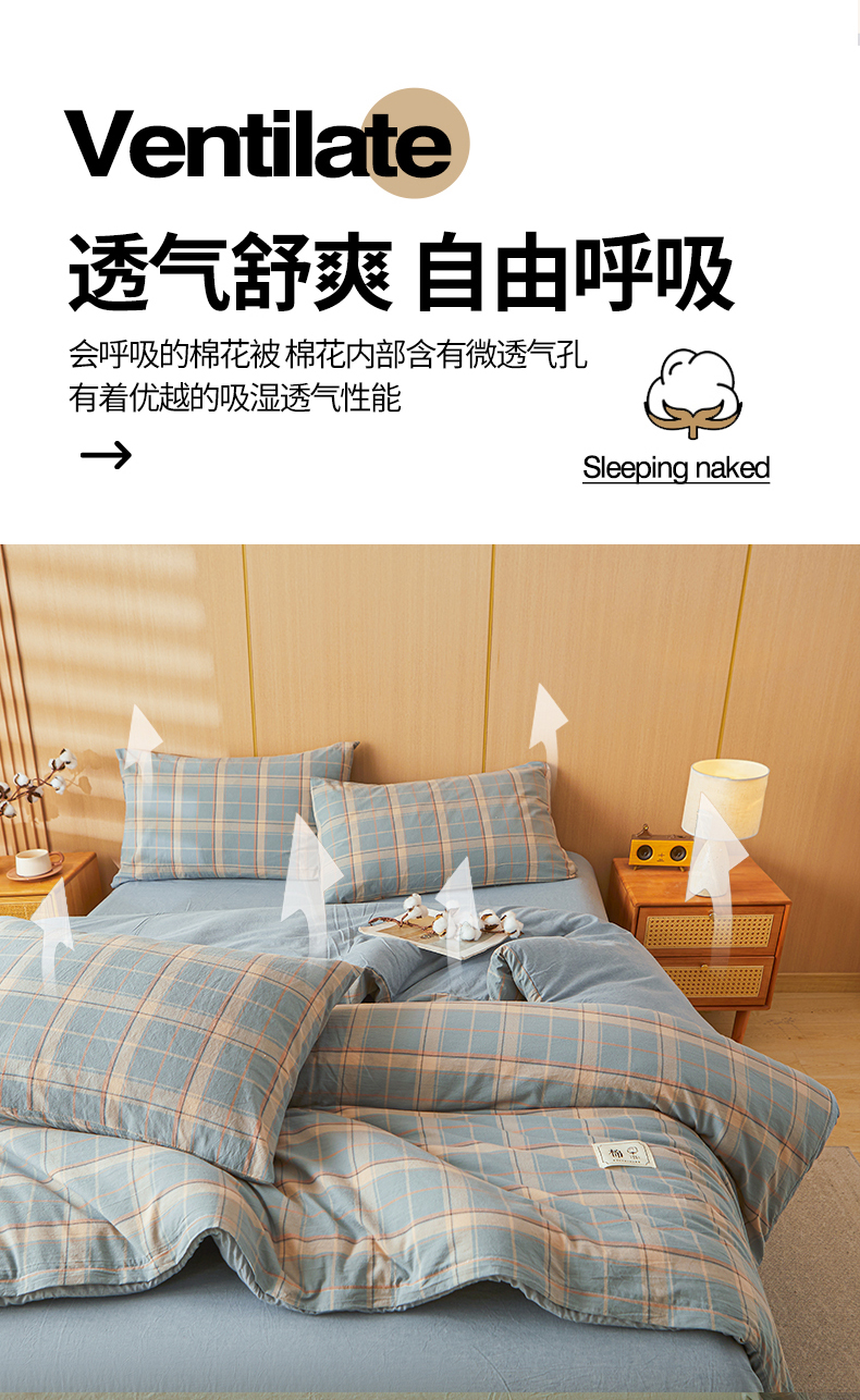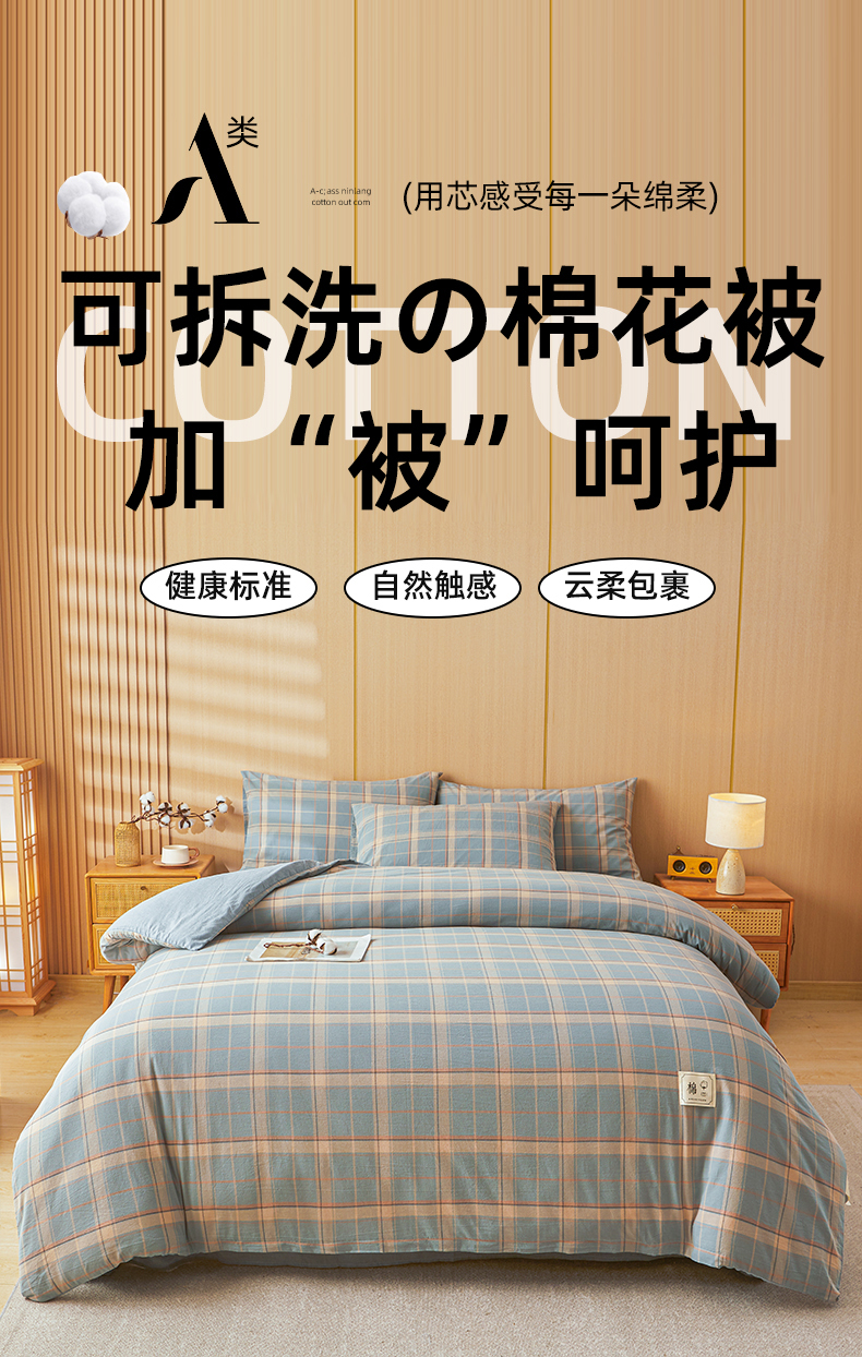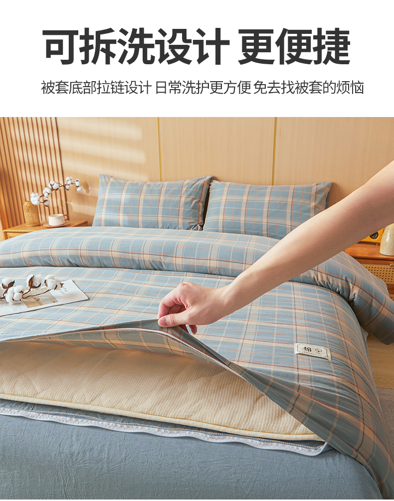 • 91家纺网 家纺一手货源 找家纺 爱屋及屋 2025新款水洗棉可拆洗棉花被被子被芯 印象蓝