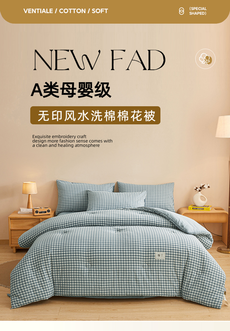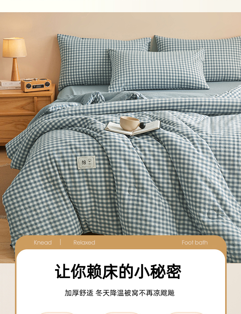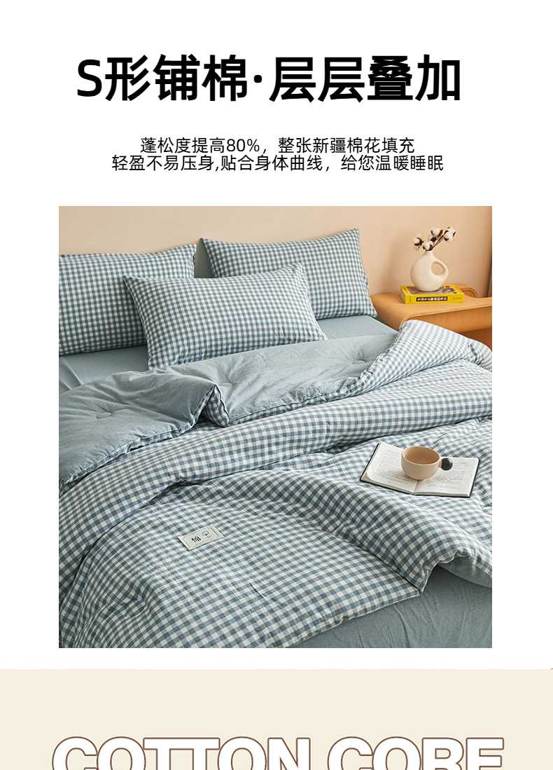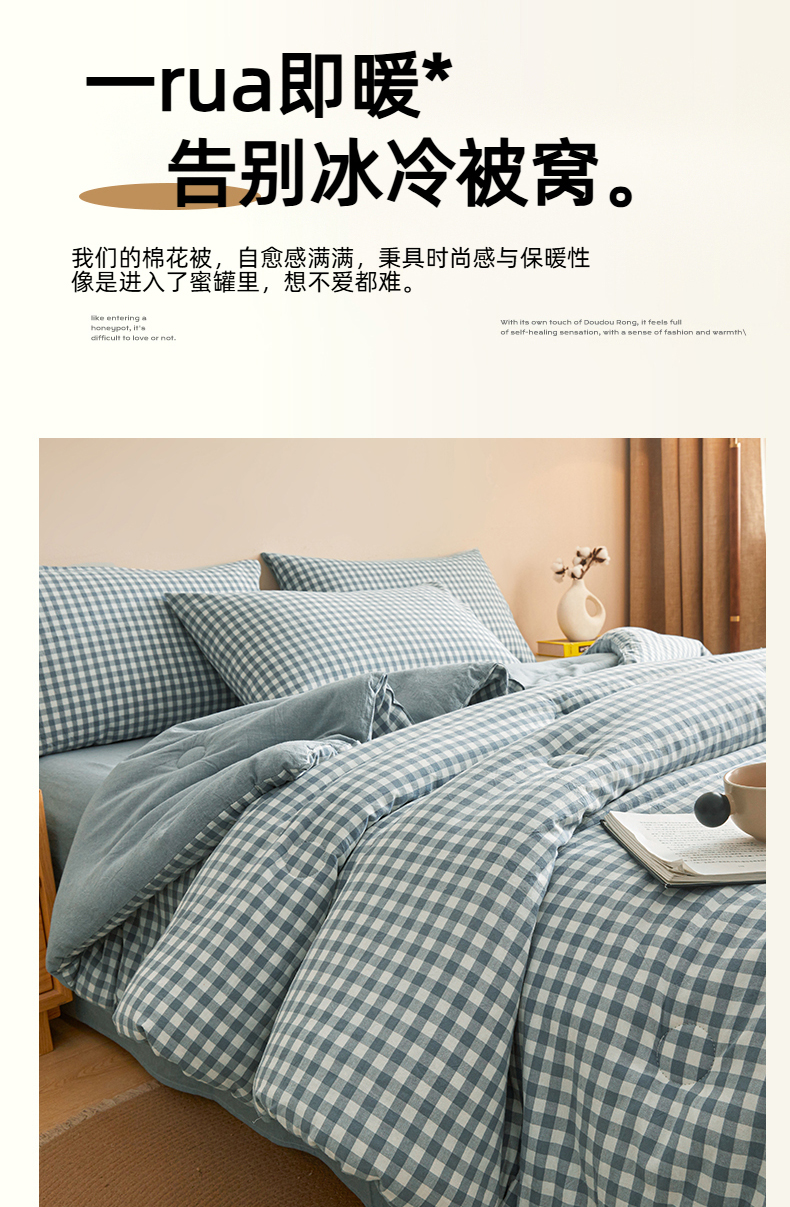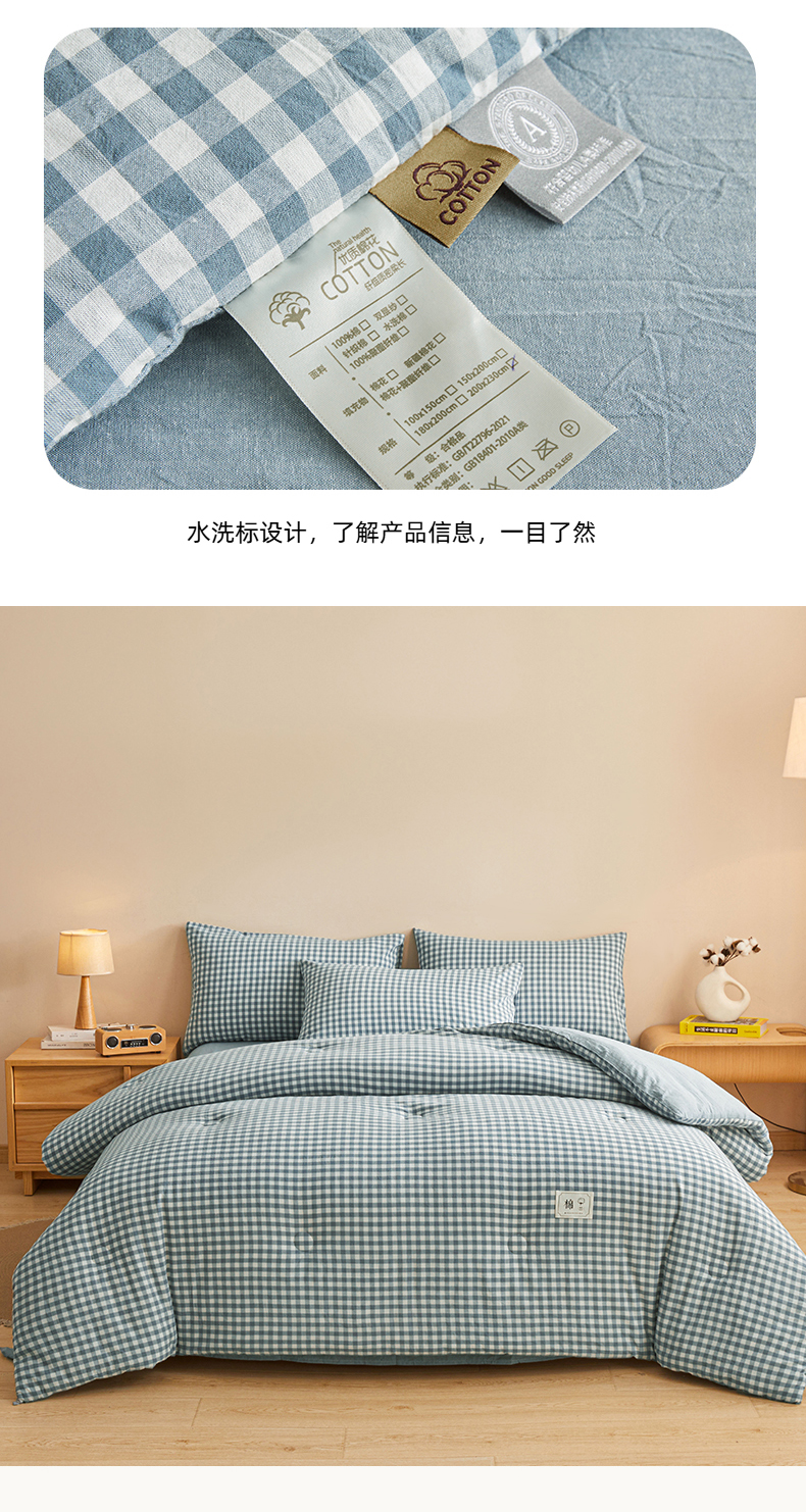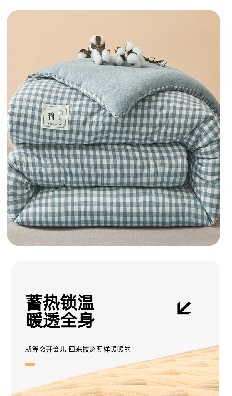 • 91家纺网 家纺一手货源 找家纺 爱屋及屋 2025新款无印风水洗棉棉花冬被被子被芯 蓝小格