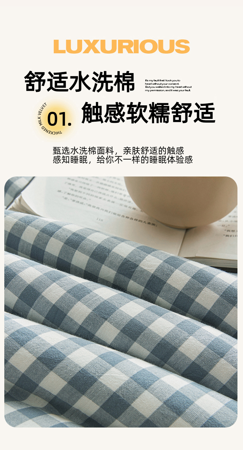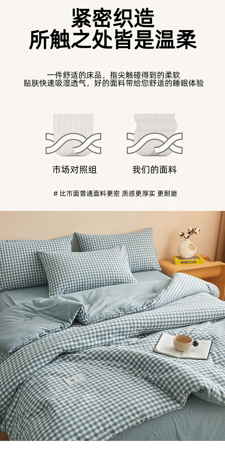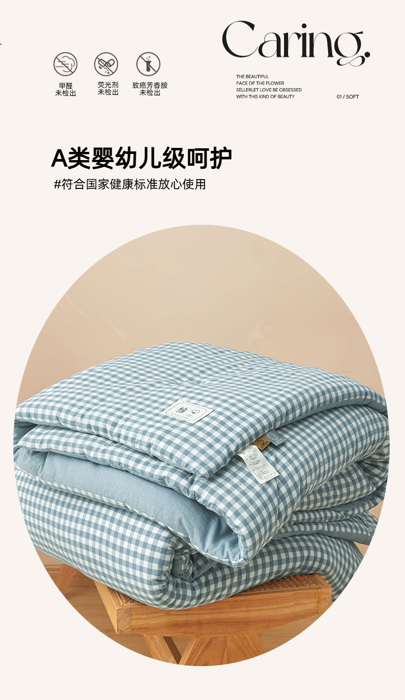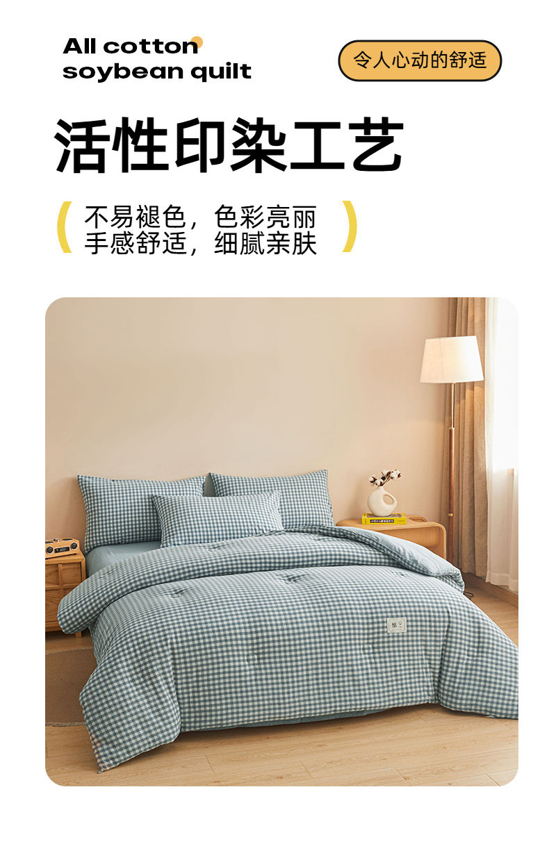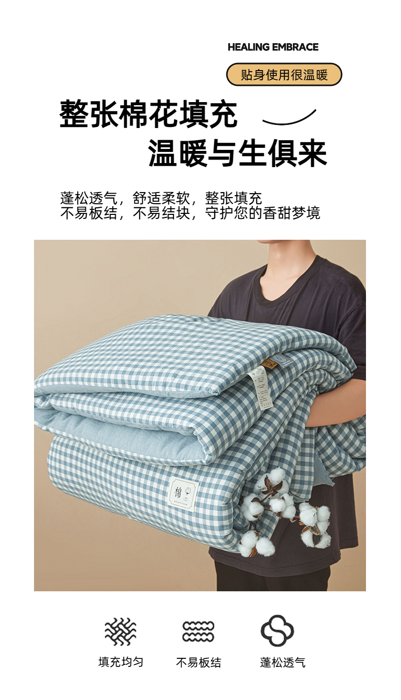 • 91家纺网 家纺一手货源 找家纺 爱屋及屋 2025新款无印风水洗棉棉花冬被被子被芯 蓝小格