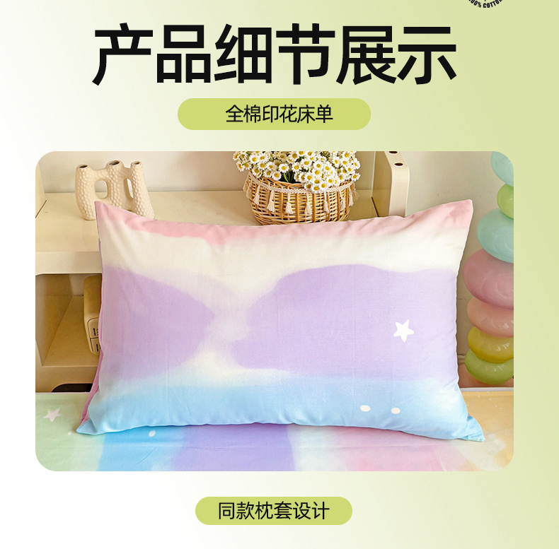 • 91家纺网 家纺一手货源 找家纺 名兮家居 2025新款全棉纯棉13372学生床上下铺单床单 彩色天空