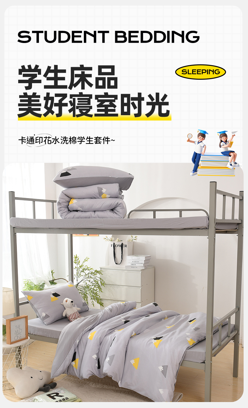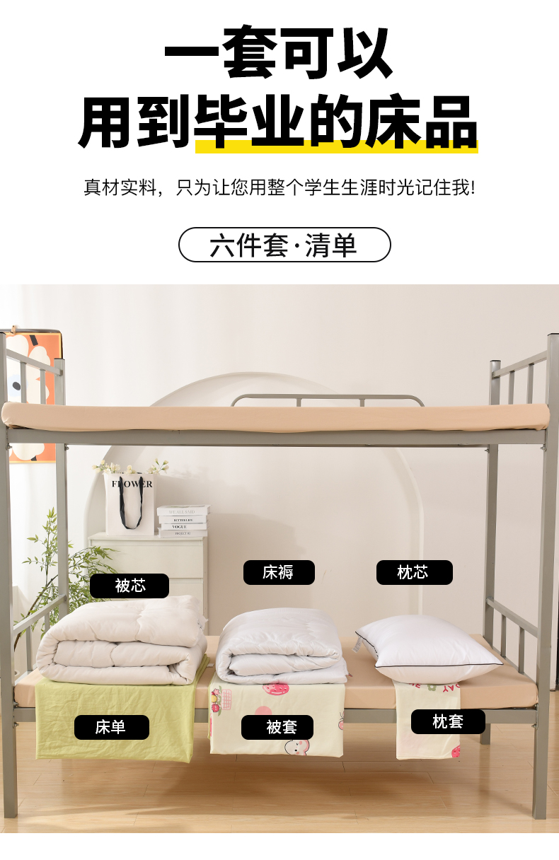 商品名称:(总)2025新款卡通风水洗棉学生三件套宿舍寝室上下铺六件套大礼包床褥被芯枕芯组合套装