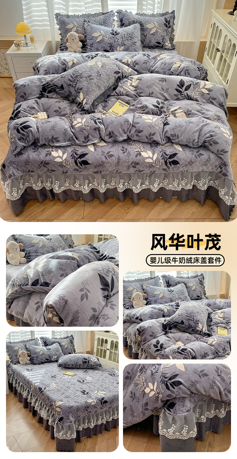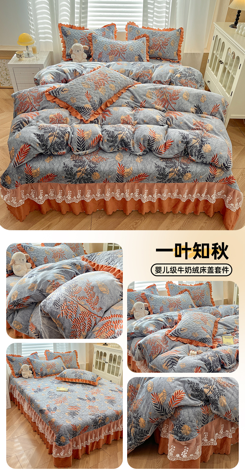 商品名称:(总)金梦家居 2025新款高克重牛奶绒印花床盖四件套