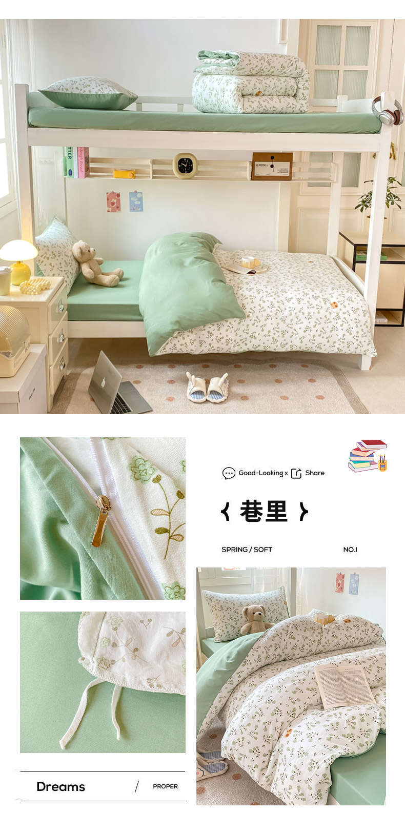 当前位置: 91家纺网 > 商品网购 > 床品套件 > 三件套 > 芷凡家纺 2025新款水洗棉双层纱学生三件套宿舍上下铺三件套 暮烟
