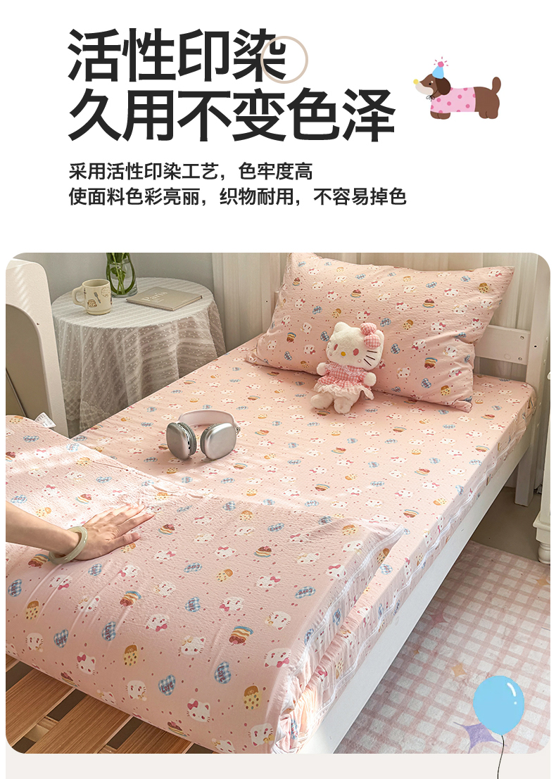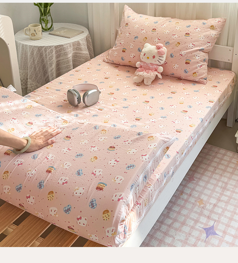 多品家纺 2025新款超柔双层纱学生宿舍单品床垫套 布丁猫