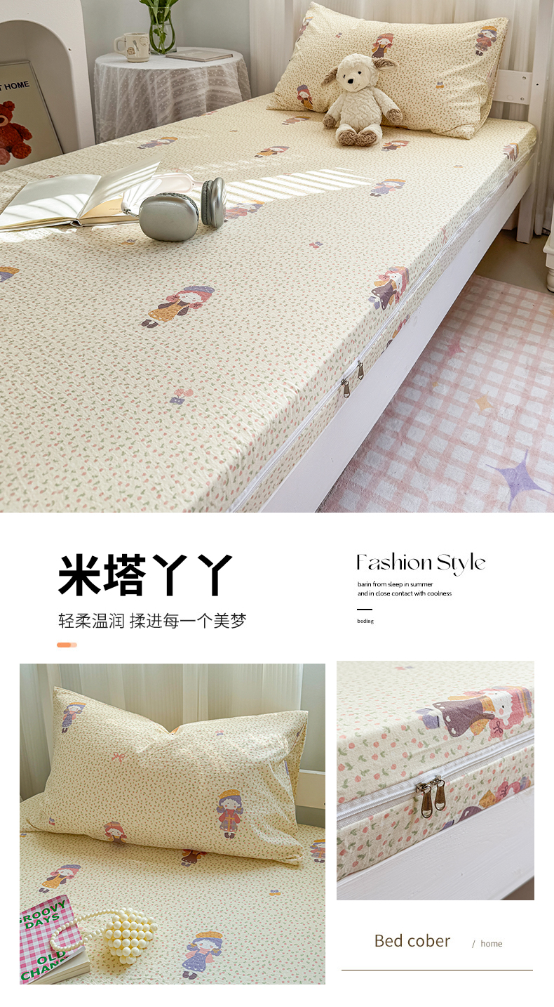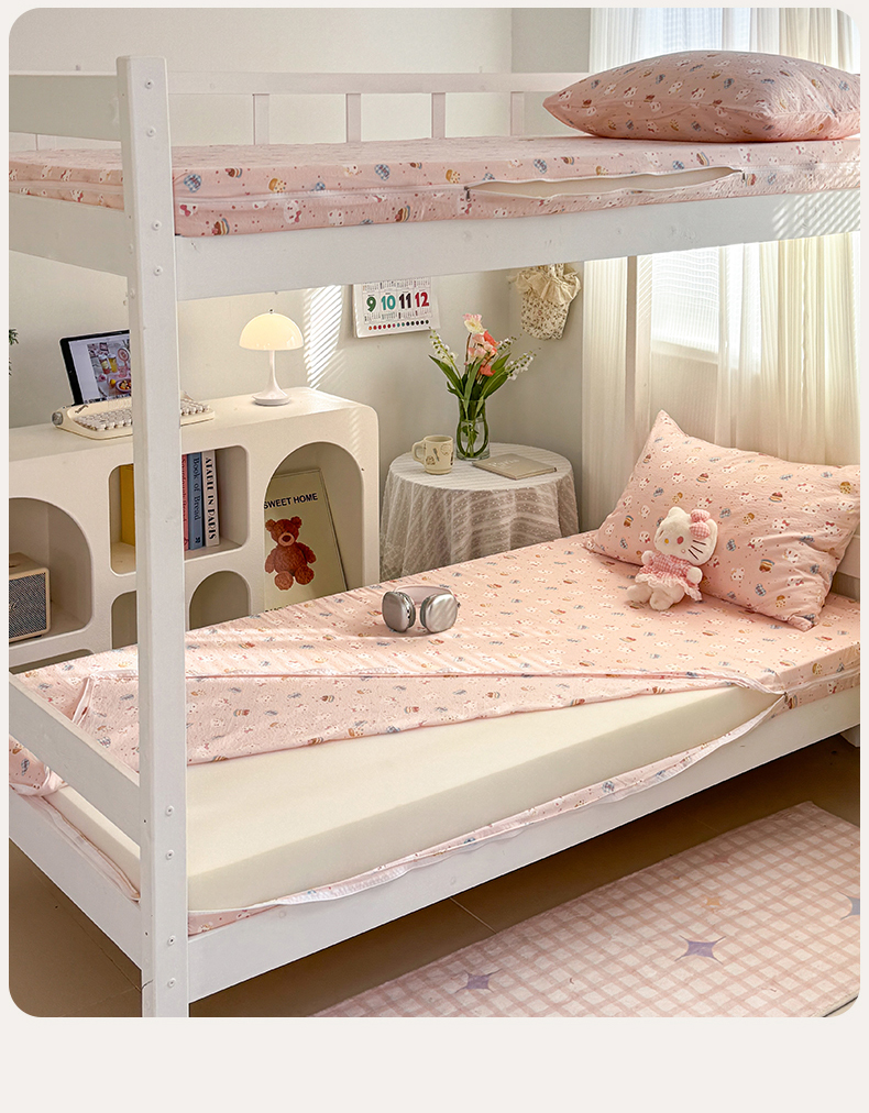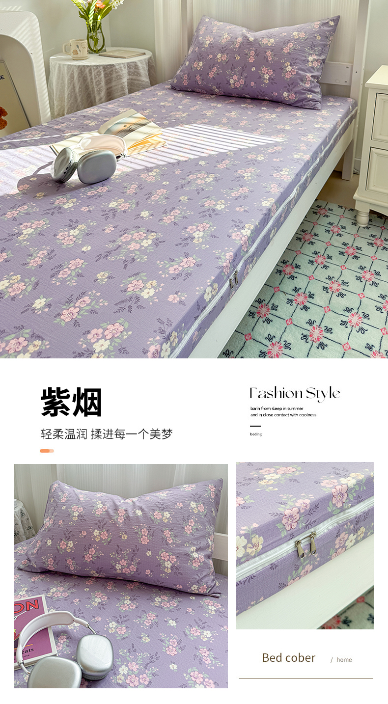 • 91家纺网 家纺一手货源 找家纺 多品家纺 2025新款超柔双层纱学生宿舍单品床垫套 布丁猫