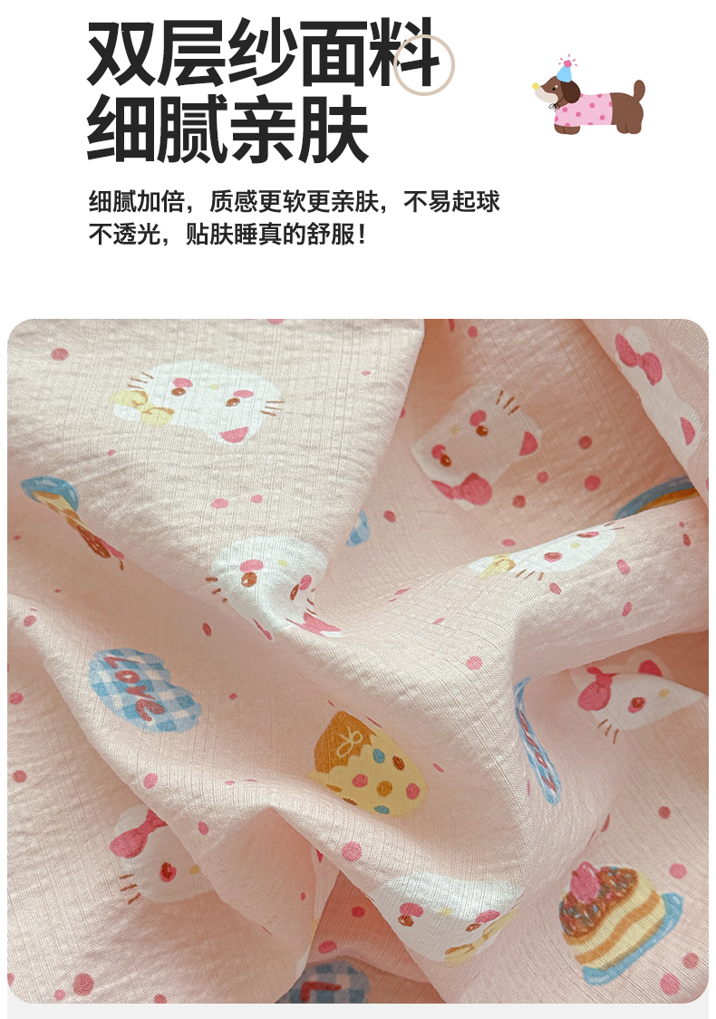 (总)多品家纺 2026新款奶呼呼超柔云感双层纱系列单被套,白露紫,半岛兰格,半岛紫格,豹纹猫咪,粉粉小花,福气满满,花田小狗,欢乐时光,开心狗,棉花兔兔,浅浅春意,桃气兔兔,淘气园,汪星人,小橘狗,熊多多,熊熊空间,学院派,樱桃蓝,樱桃紫