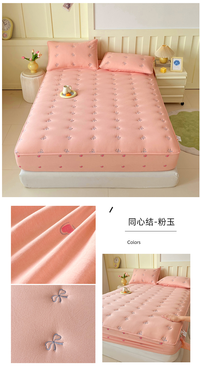尊康家纺(原磊科) 2025新款7A抗菌全棉色织水洗棉大豆棉填充床笠-同心结 同心结-粉玉