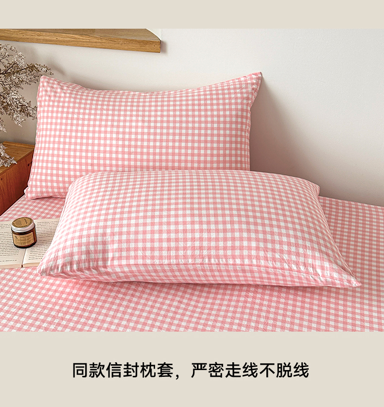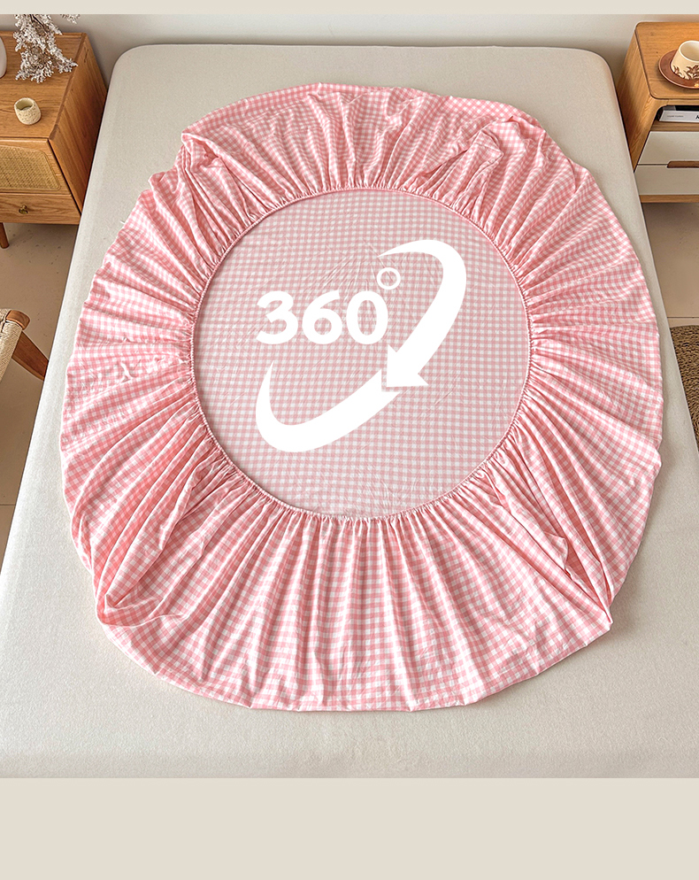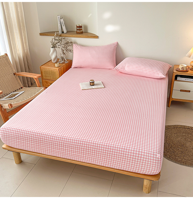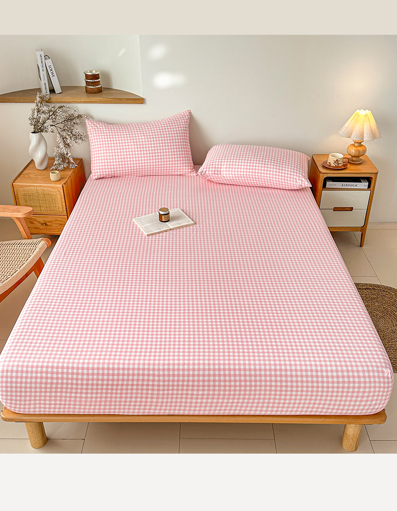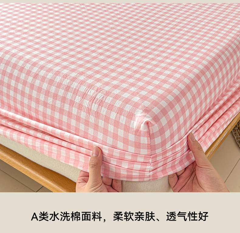 商品名称:盛秋家纺 2025新款A类水洗棉格子印花床笠单品床笠单件单床笠 粉小格