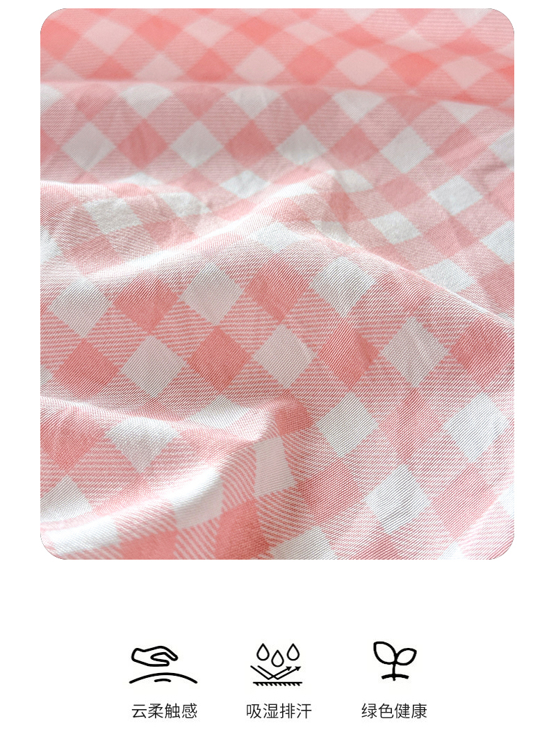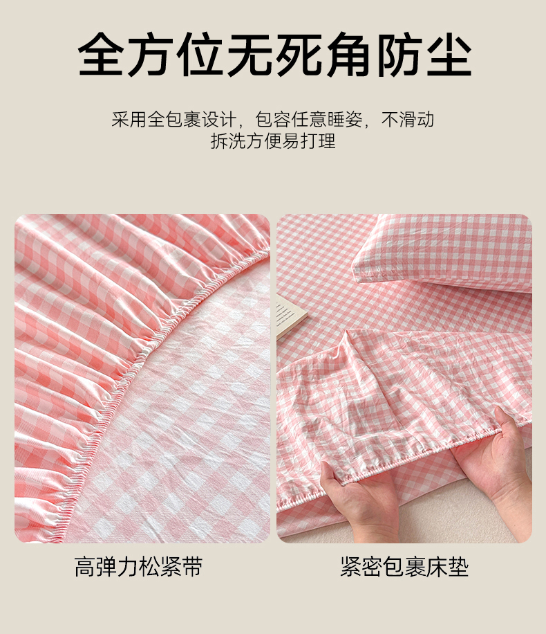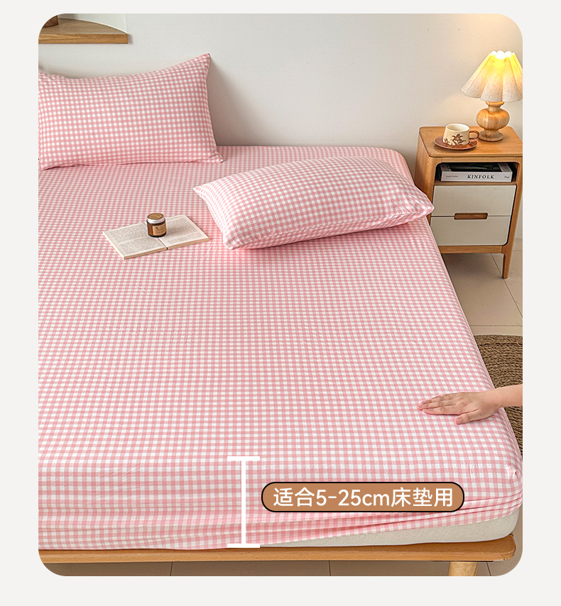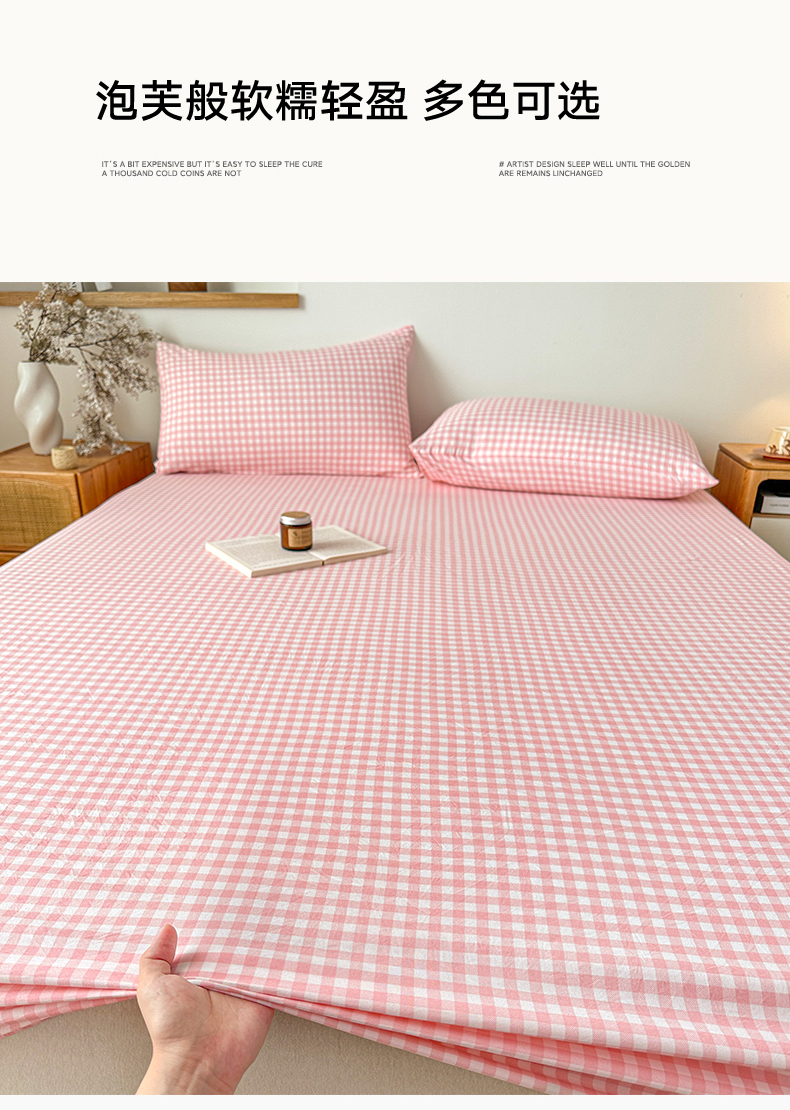 商品名称:盛秋家纺 2025新款A类水洗棉格子印花床笠单品床笠单件单床笠 粉小格