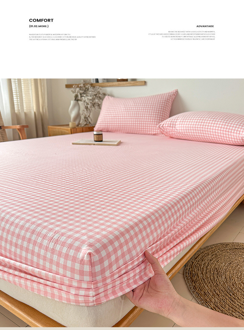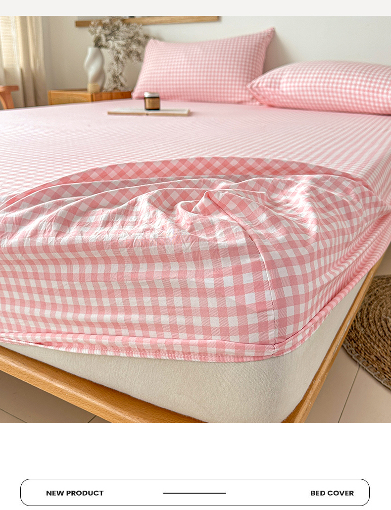 盛秋家纺 2025新款A类水洗棉格子印花床笠单品床笠单件单床笠 粉小格