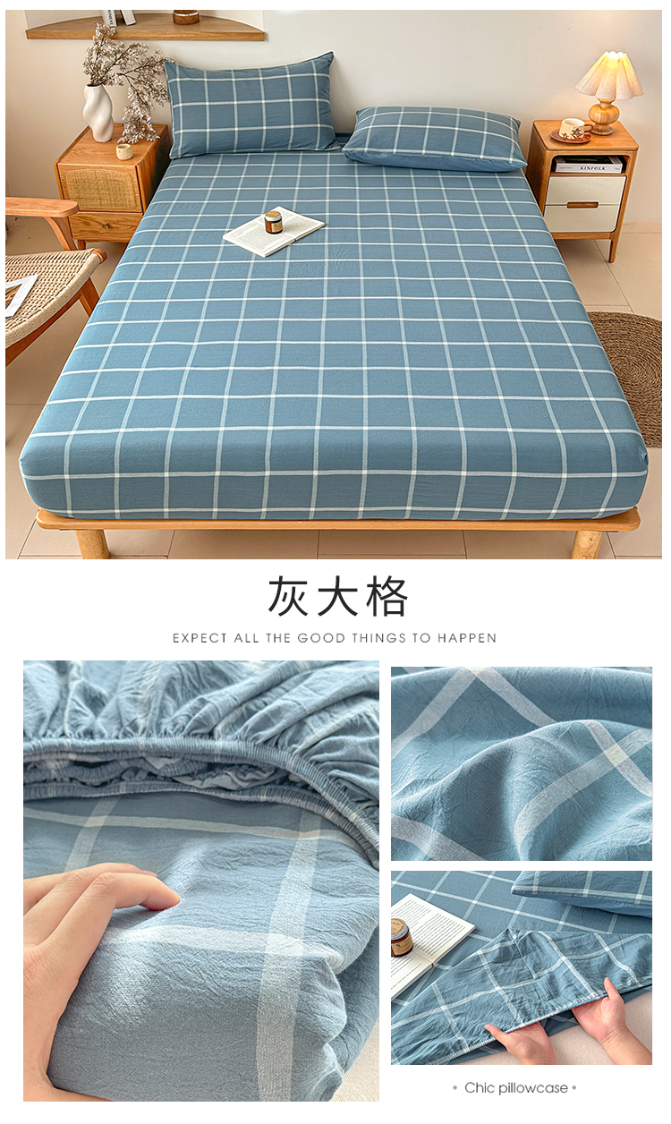 (总)盛秋家纺 2025新款A类水洗棉格子印花床笠单品床笠单件单床笠,蓝小格,保罗,组合图仅供展示,粉小格,格瑞斯,黑灰中条,灰大格,简约,蓝大格,蓝调,抹茶,泡芙黄,瑞克