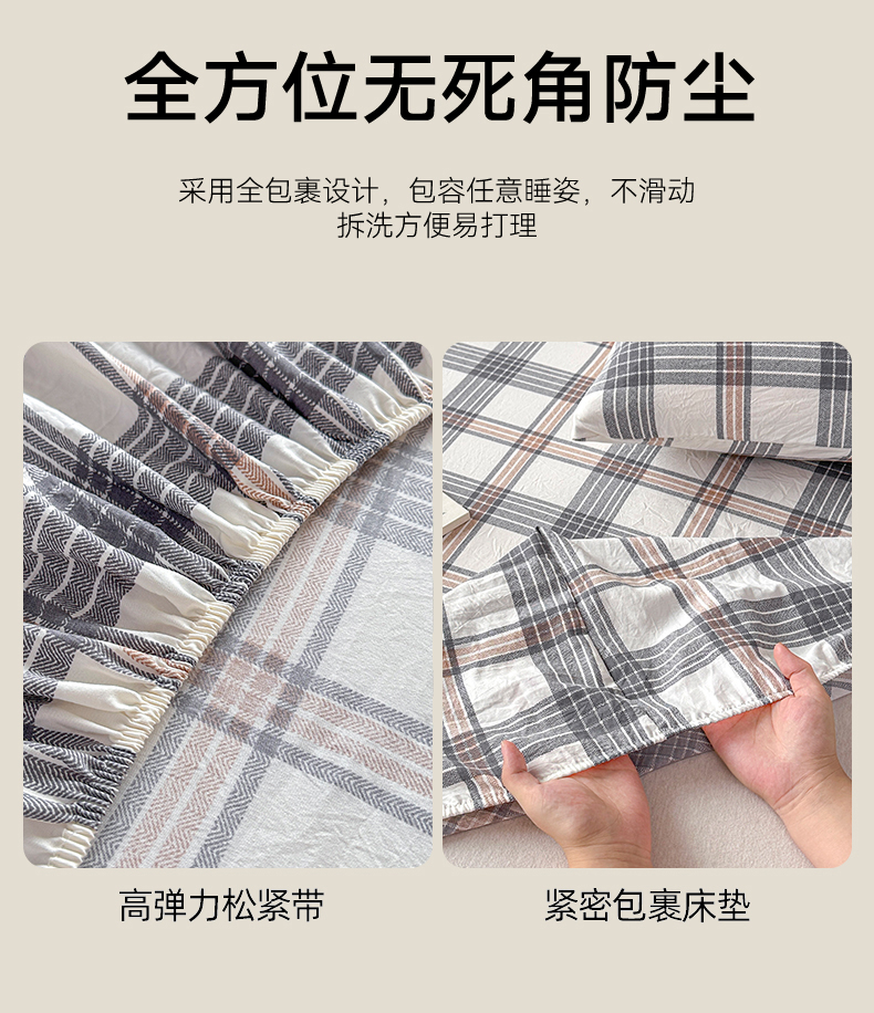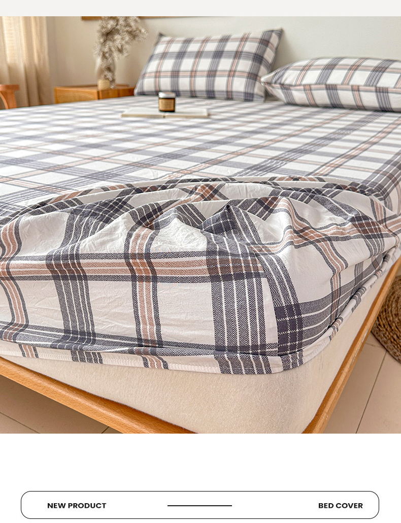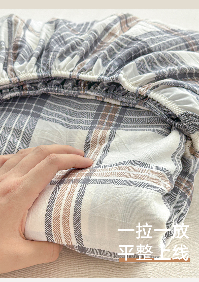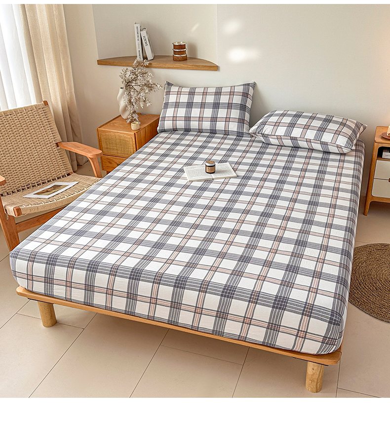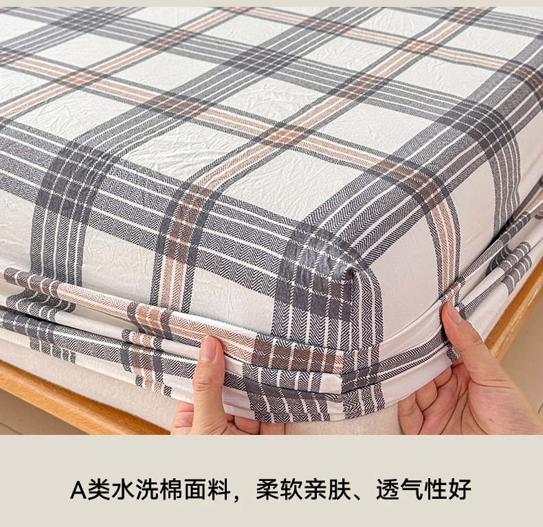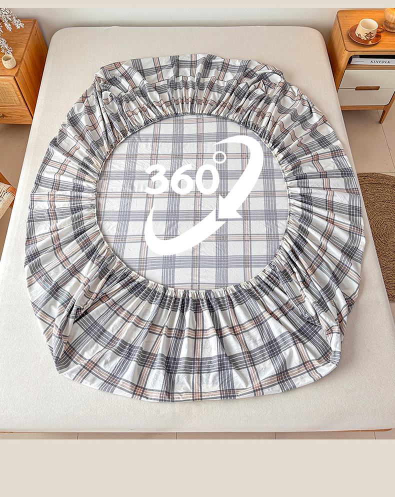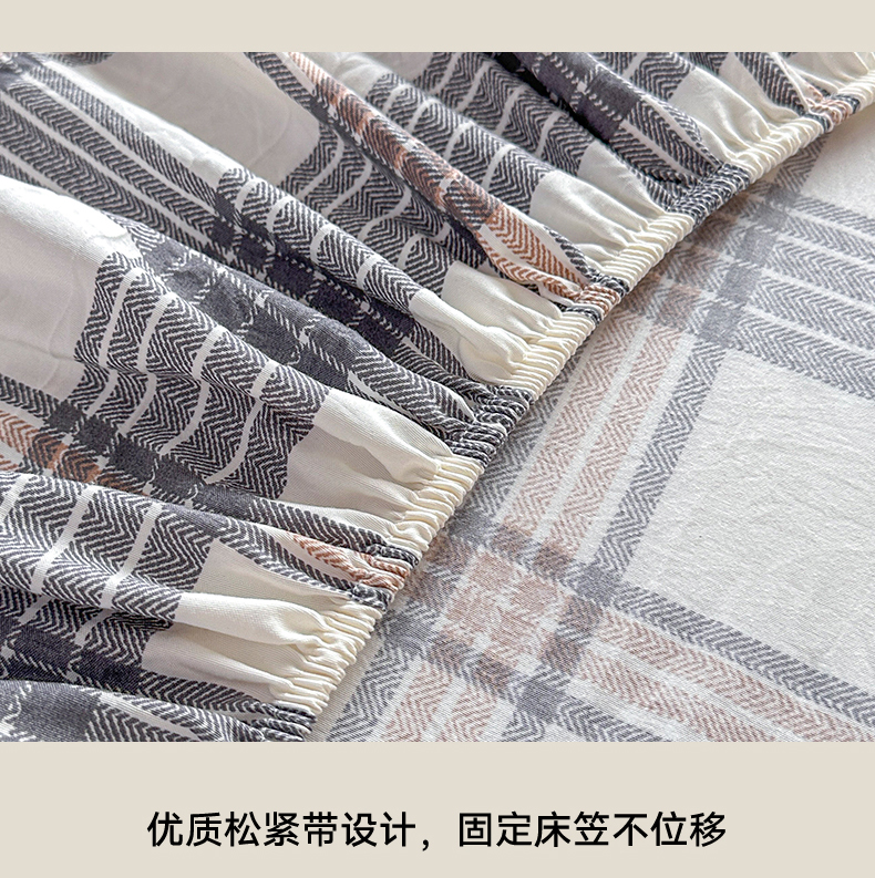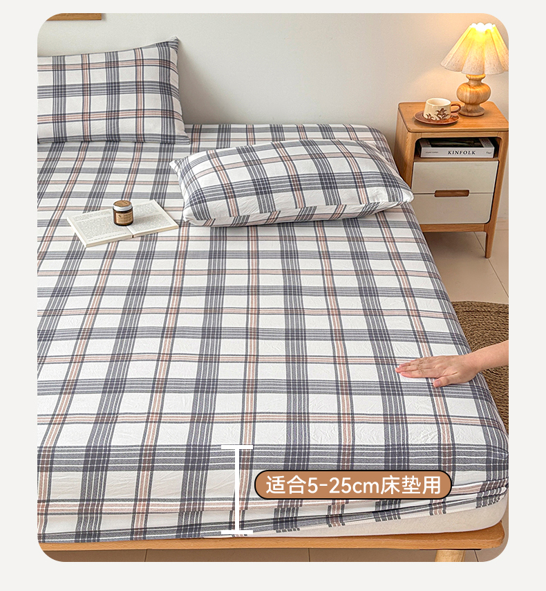 盛秋家纺 2025新款A类水洗棉格子印花床笠单品床笠单件单床笠 瑞克