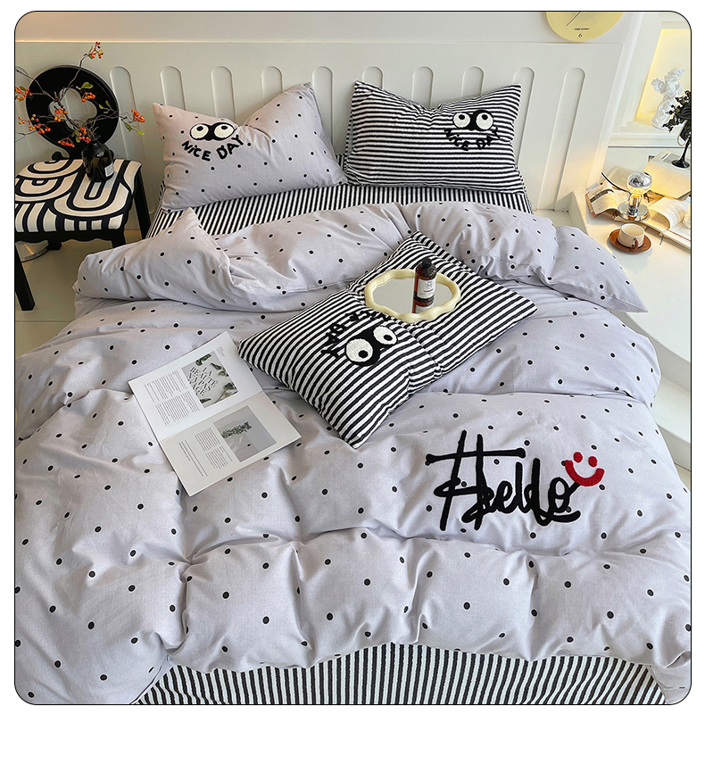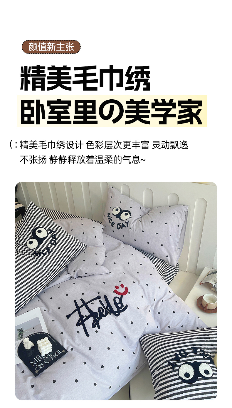 商品名称:(总)炫拼家纺 2025新款全棉磨毛ins风毛巾绣纯棉四件套-hello系列