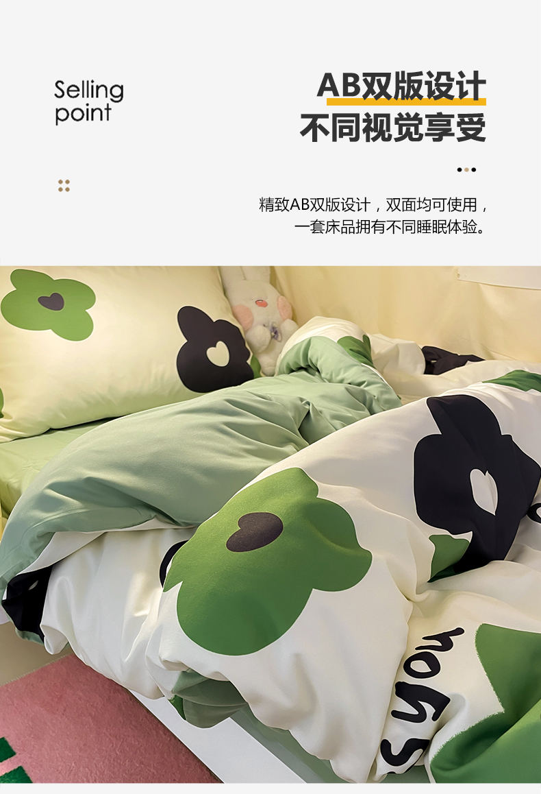 当前位置: 91家纺网 > 商品网购 > 床品套件 > 三件套 > 爱彼家纺 2025新款卡通印花水洗棉学生宿舍三件套上下铺三件套 兔兔花语