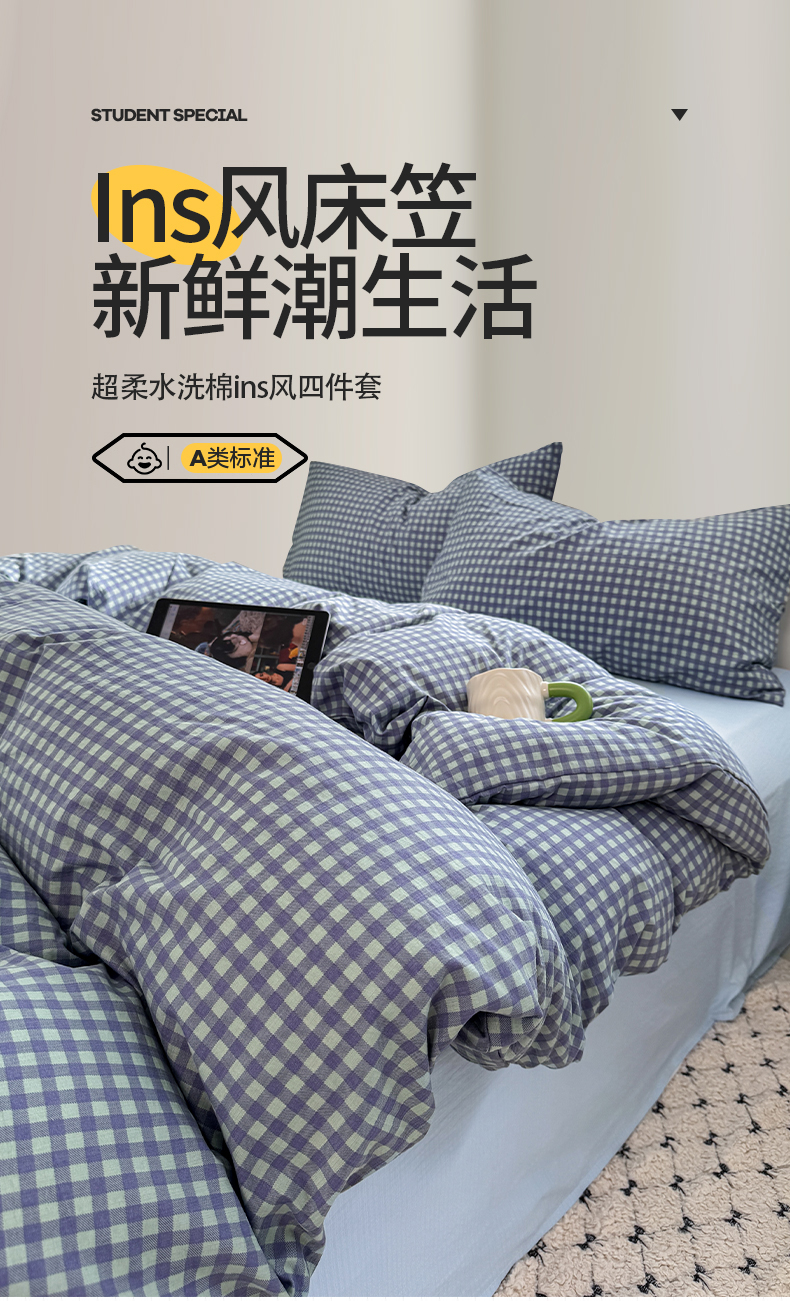 当前位置: 91家纺网 > 商品网购 > 床品套件 > 四件套 > 其它四件套 > 多品家纺 2025新款超柔云感双层纱四件套 绿格