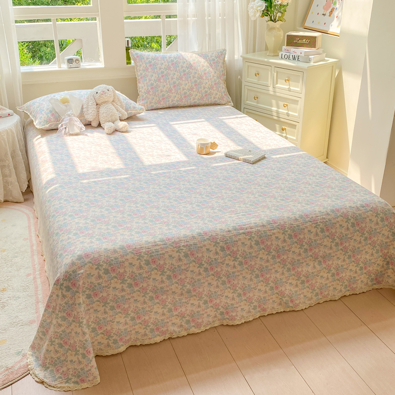 • 91家纺网 家纺一手货源 找家纺 欧尚 2025新款云感双层纱针织棉印花母婴级超柔裸睡级床单三件套 小美