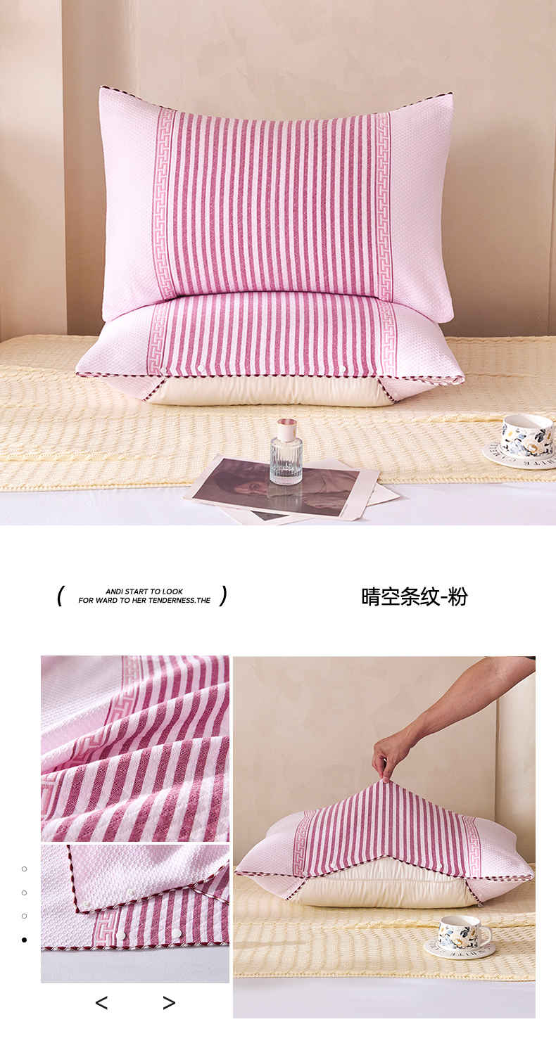 商品名称:悦然毛巾被 2025新款全棉纯棉纱布多功能枕巾枕套带扣子 晴空条纹粉