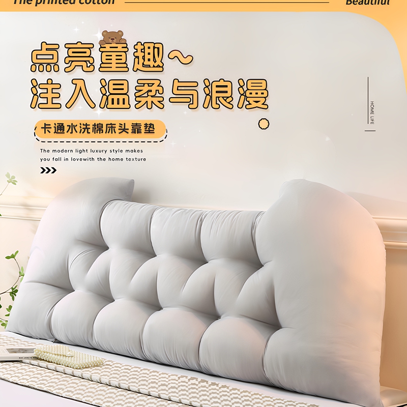 (总)碧尔家居 2025新款榻榻米床头靠枕大靠背卧室护腰靠垫可拆洗沙发双人软包三角玉米绒带头枕,米白,牛仔蓝,银灰