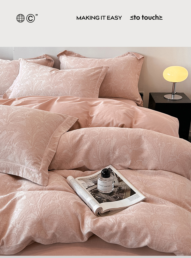 锦彩家居 2025新款A类60支全棉色织提花四件套 琼枝玉叶-粉玉