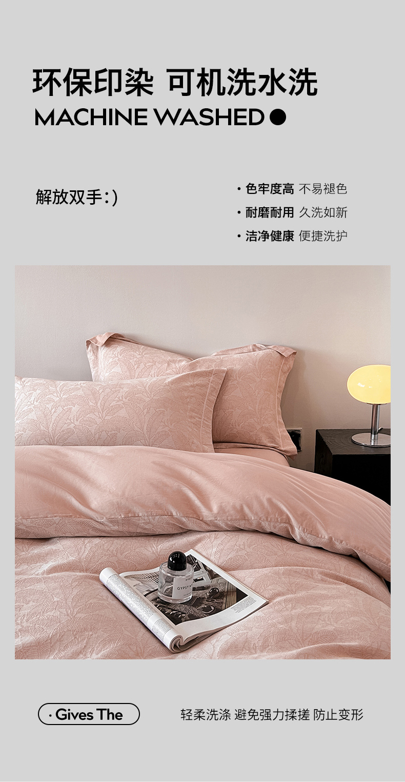 商品名称:锦彩家居 2025新款A类60支全棉色织提花四件套 琼枝玉叶-粉玉