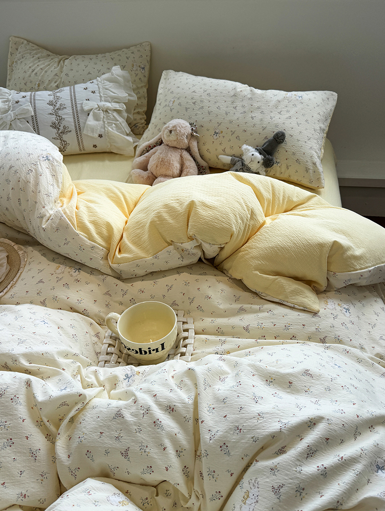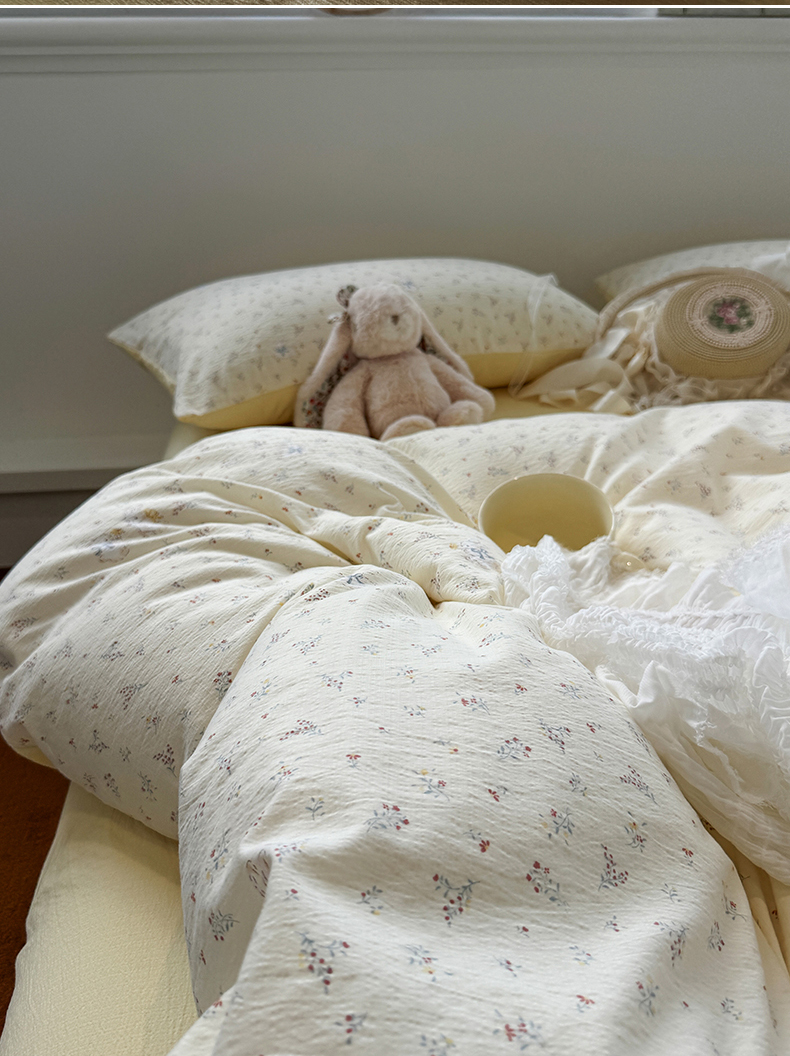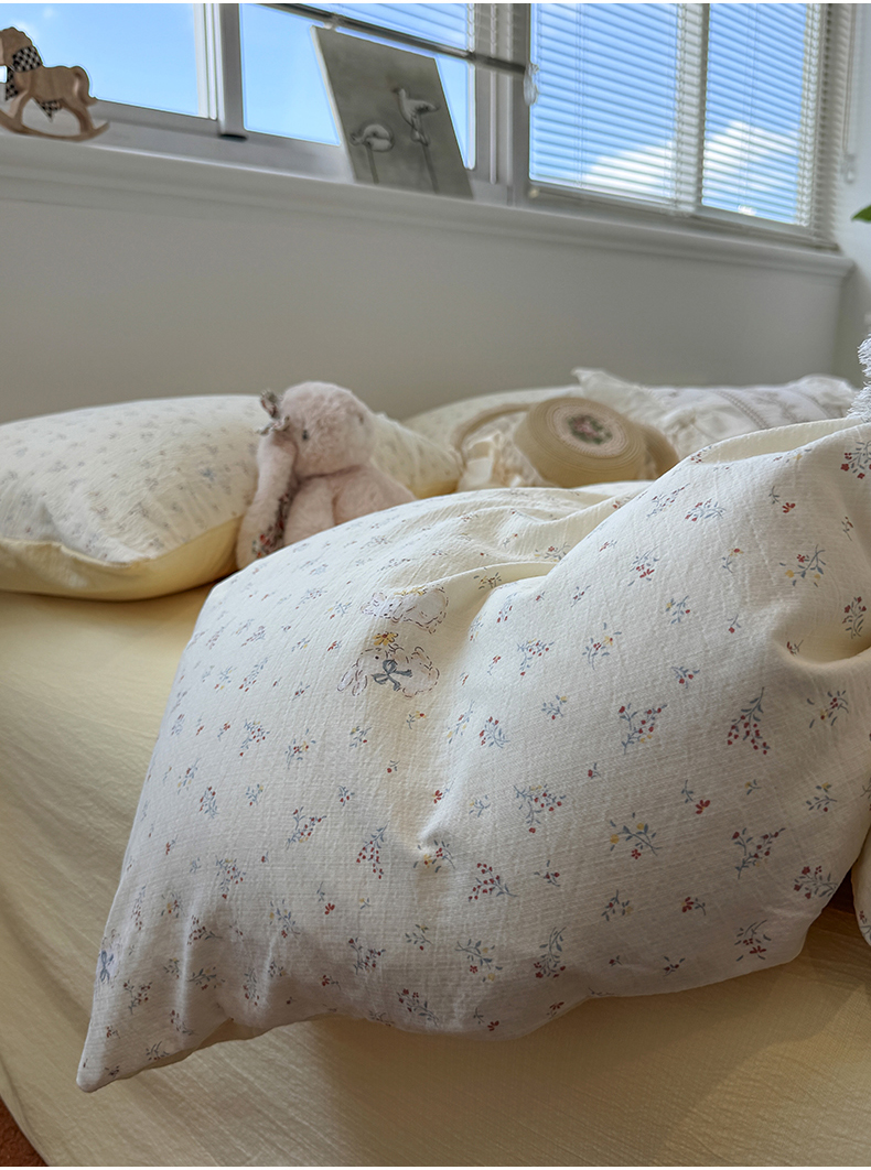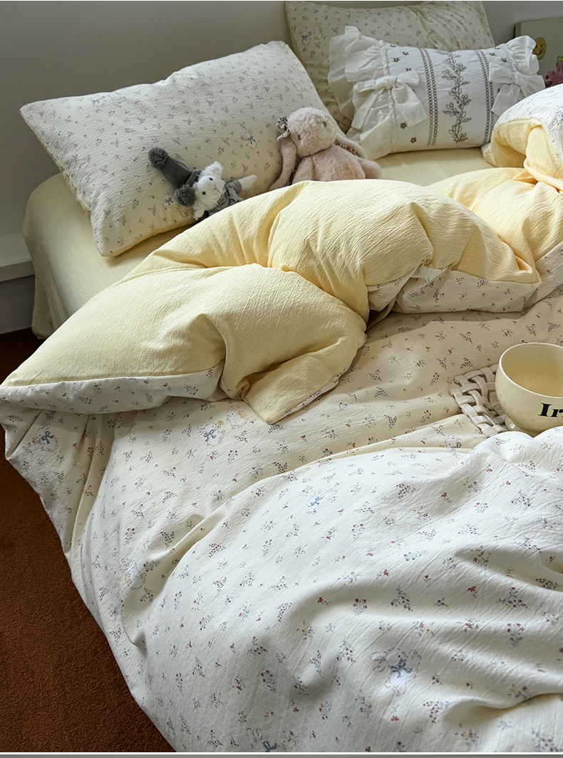 当前位置: 91家纺网 > 商品网购 > 床品套件 > 四件套 > 其它四件套 > 水墨江南 2025新款高克重云感双层纱印花四件套-场景二 花园兔