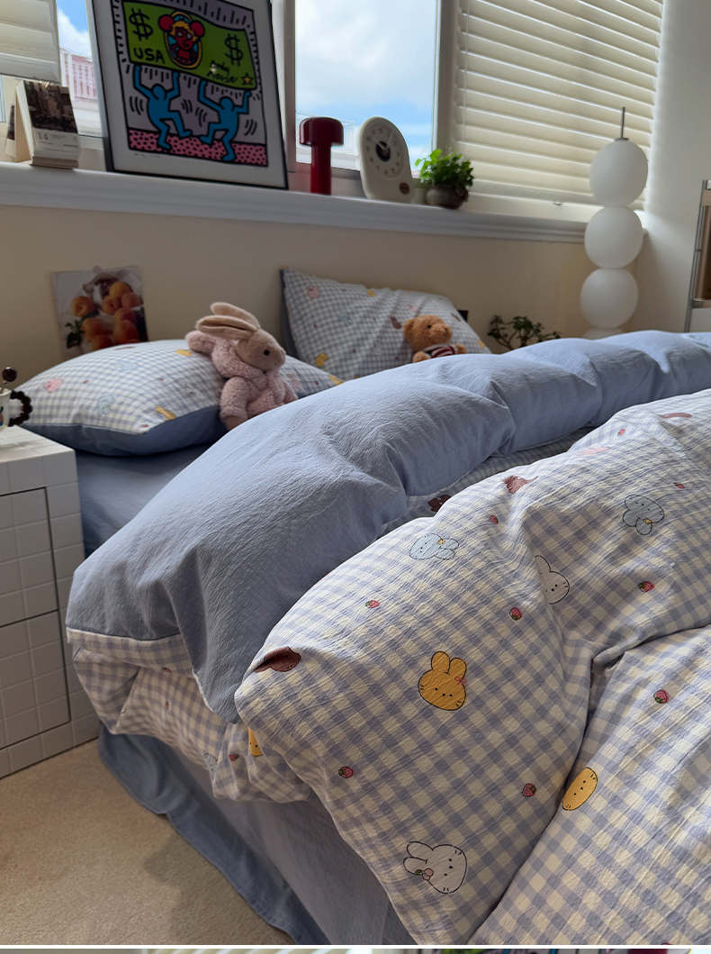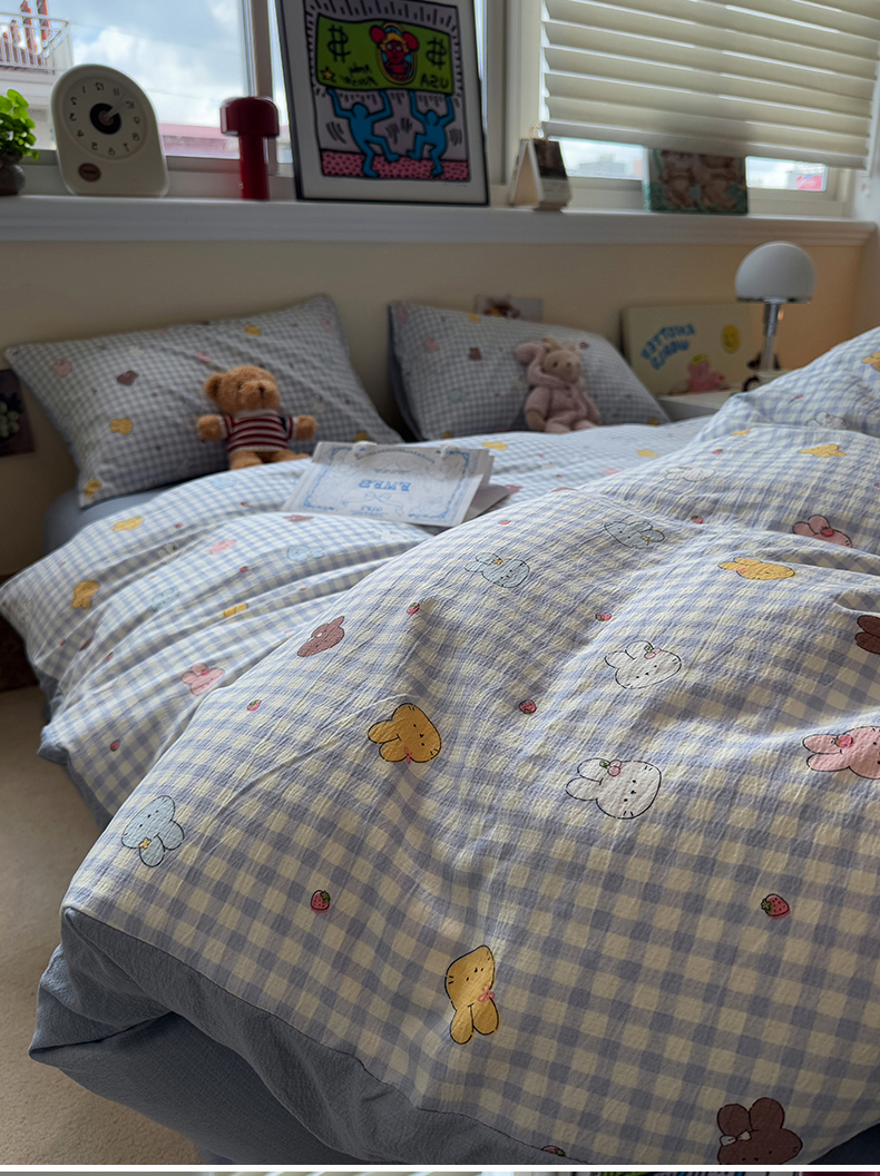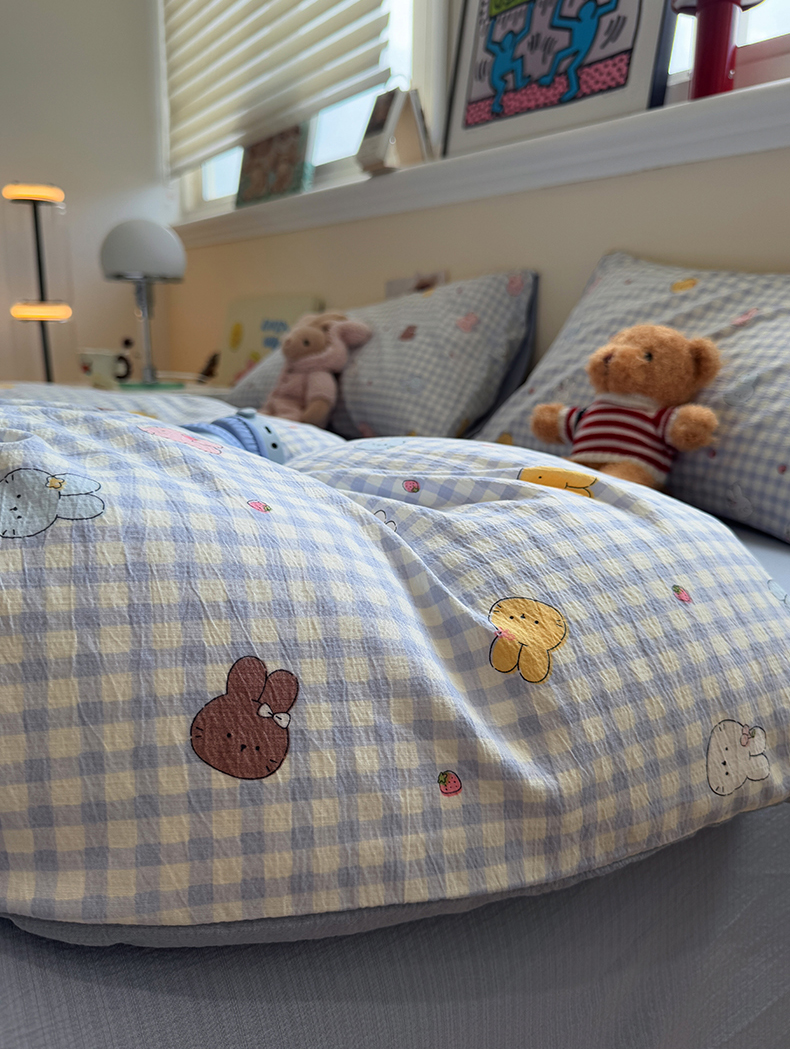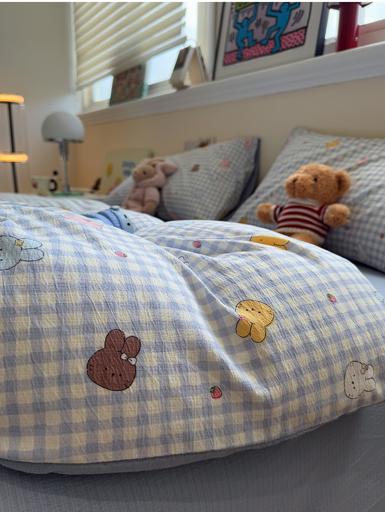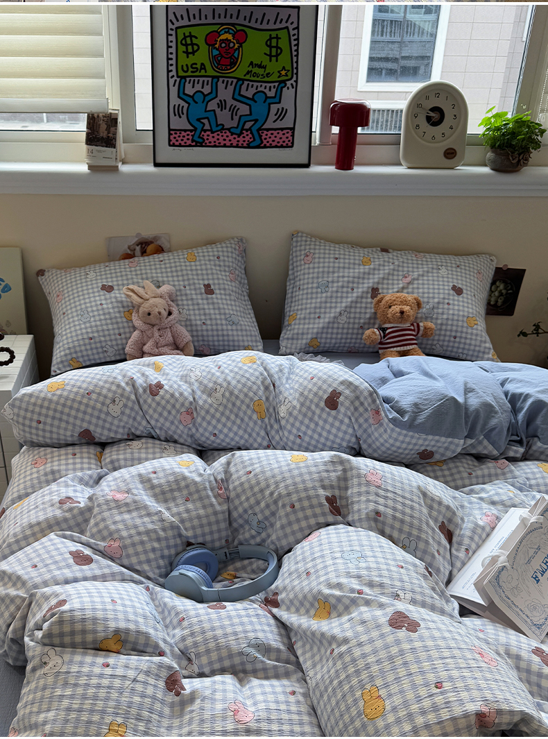当前位置: 91家纺网 > 商品网购 > 床品套件 > 四件套 > 其它四件套 > 水墨江南 2025新款高克重云感双层纱印花四件套-场景二 萌萌兔