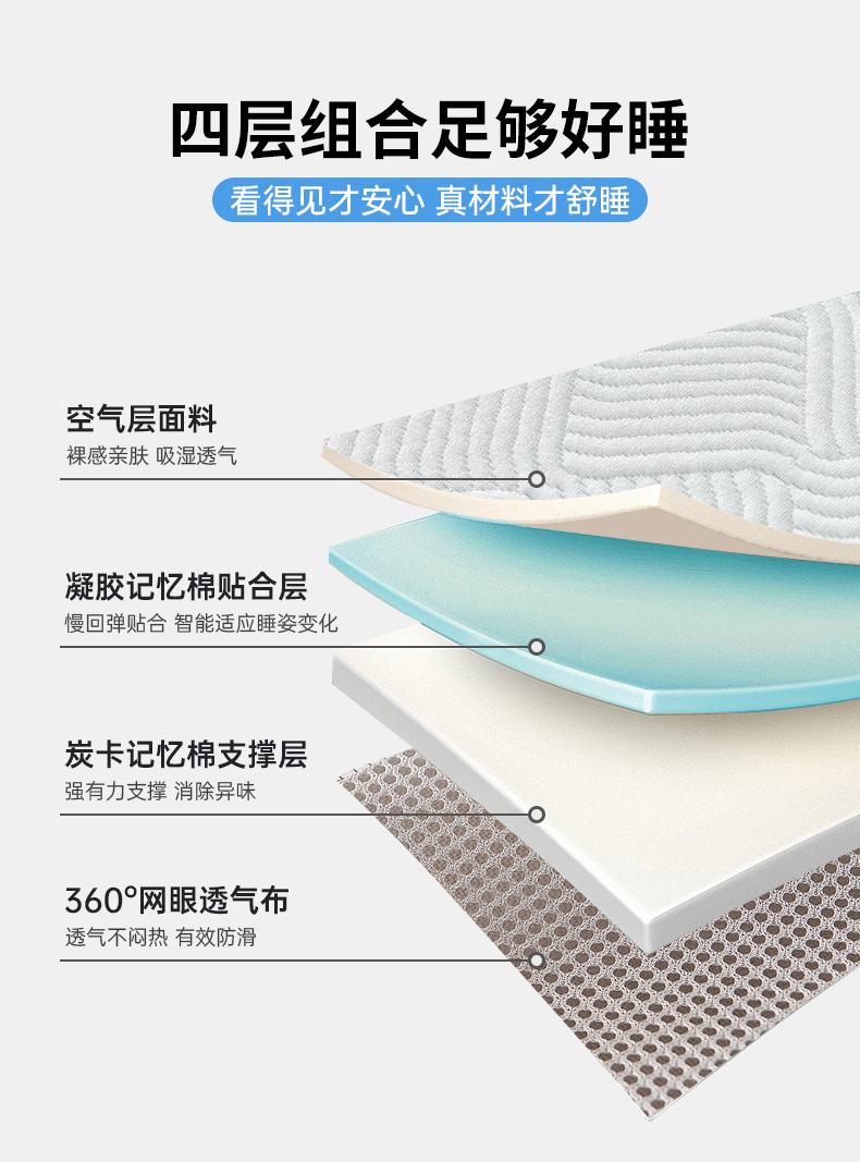 (总)锦丝钰床垫 2025新款双层网眼透气乳胶记忆棉床垫,静谧灰,云层白