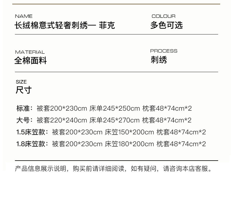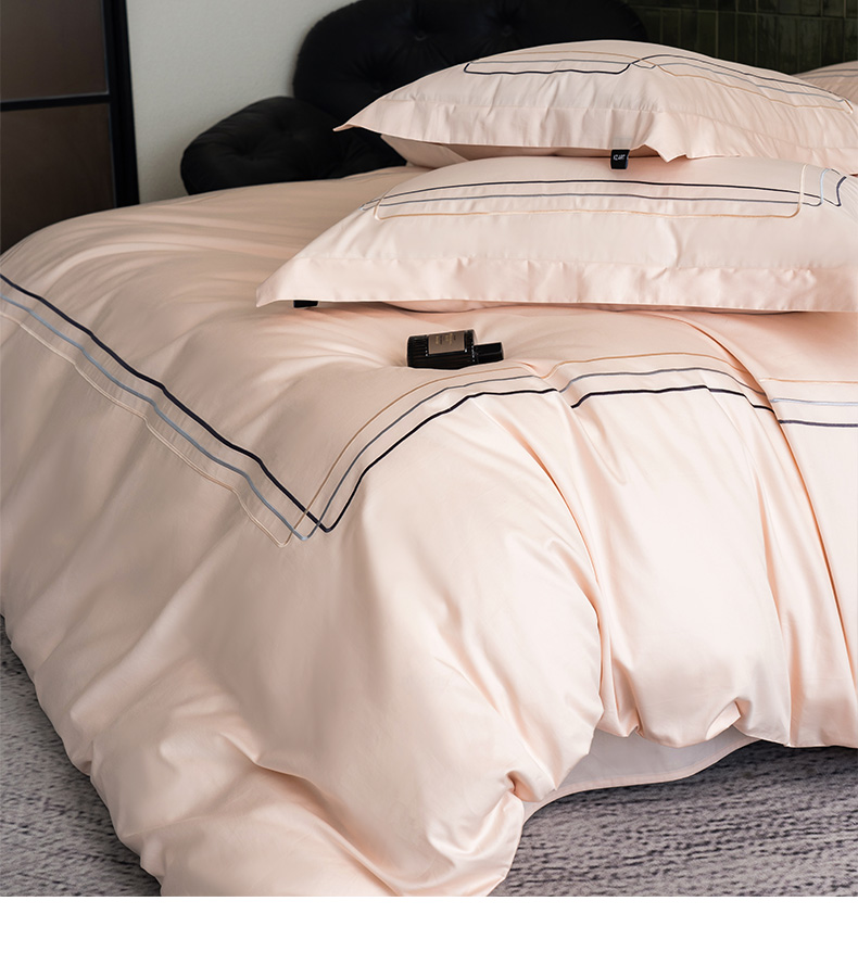 商品名称:卡姿家纺 2025秋冬60支长绒棉意式轻奢刺绣四件套-菲克 菲克雅灰粉