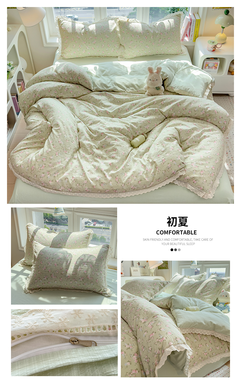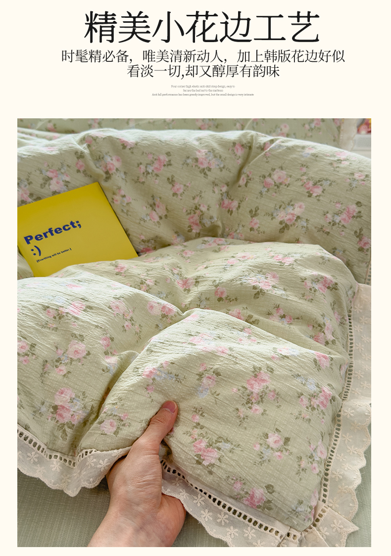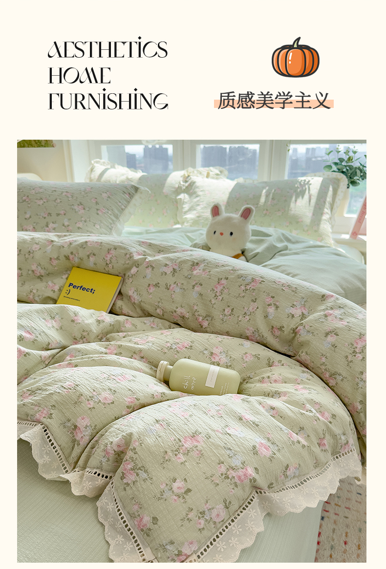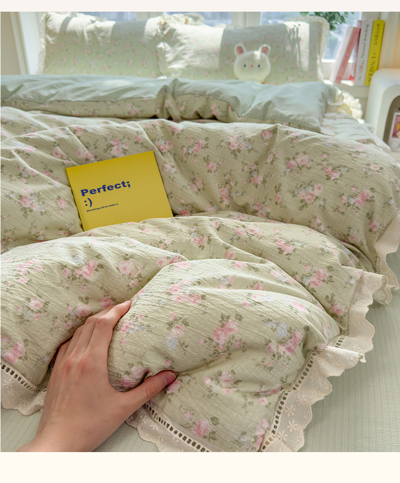 当前位置: 91家纺网 > 商品网购 > 床品套件 > 四件套 > 双层纱四件套 > 雯豆家纺2025新品皱皱双层纱四件套镂空花边款三件套 初夏