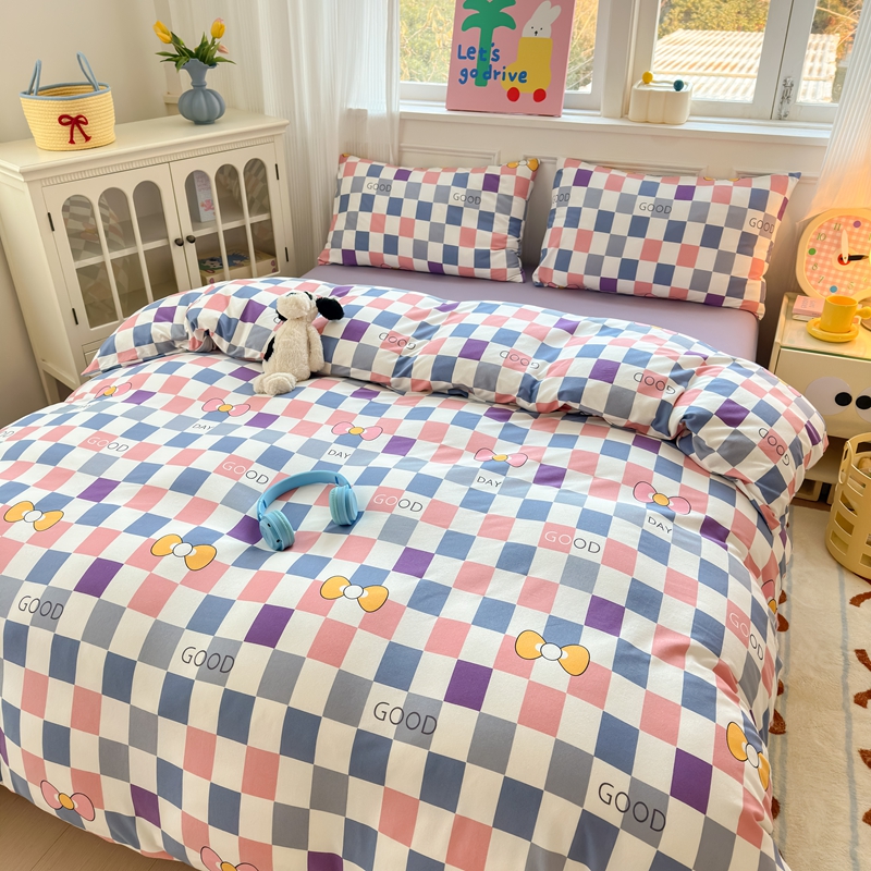 (总)舒居家纺 2025新款全棉针织棉 被套 +枕套 非四件套,good格子,爱心花,爱心兔子,巴厘岛叶,橘子,蓝色小熊,菱形格,五角星,小彩虹,云朵笑脸,实拍组图仅供展示不可下单