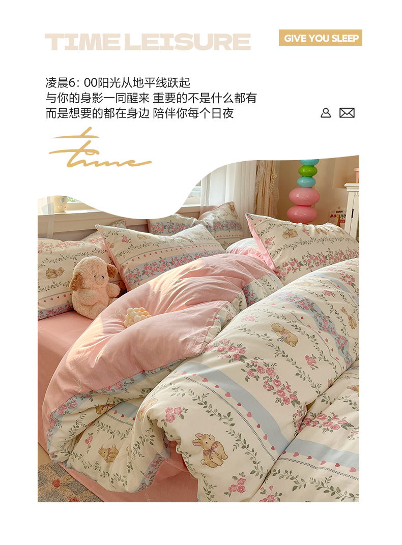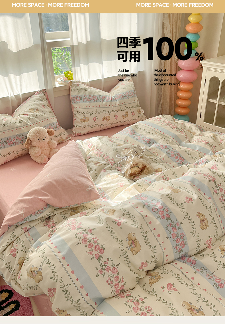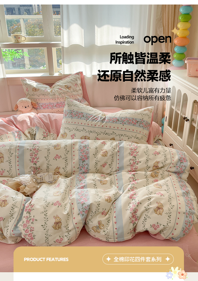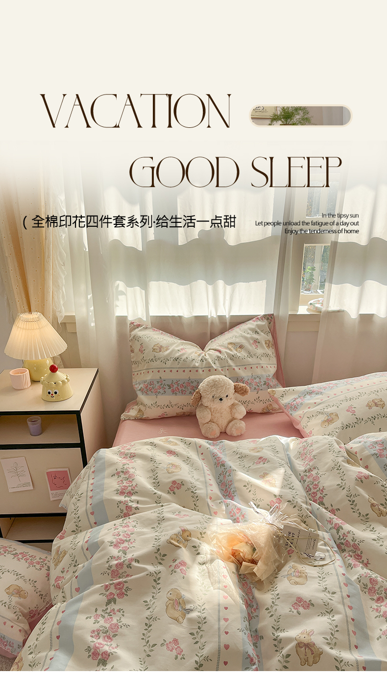 盛馨家纺 2025年开学季秋冬新品小清新全棉学生三件套四件套床笠四件套跑量款系列 花藤兔