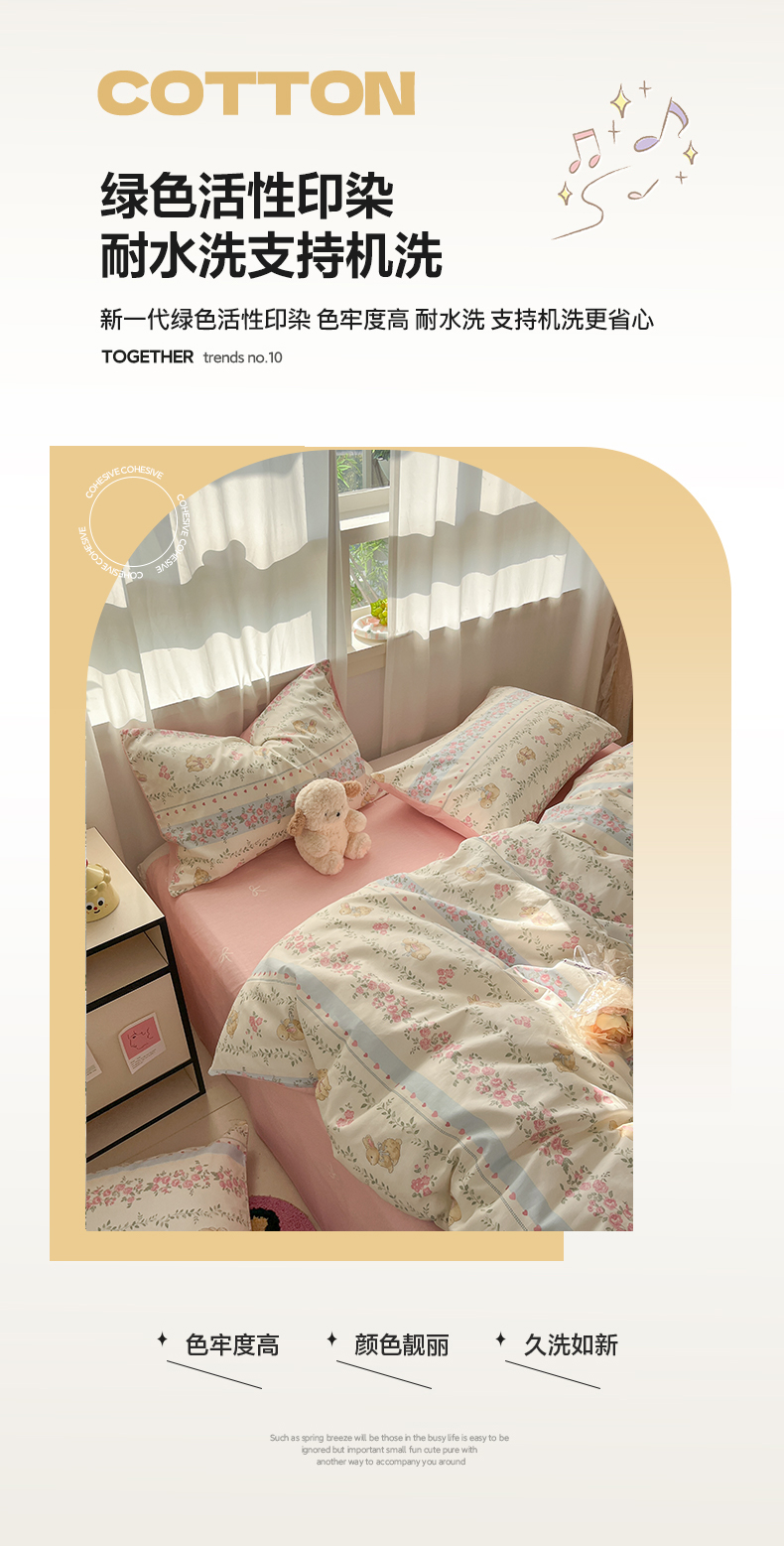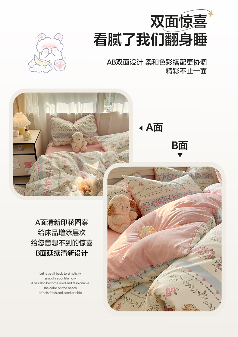 总盛馨家纺 2023新款ins北欧风高支高密全棉喷气小清新纯棉四件套,花丛兔,锦鲤,快乐小狗,梦幻,梦境小兔,入夏,若微,溪沐,叶墨新晨,樱桃兔,星球家园,草莓兔,花粉兔,花花小熊,花开富贵,花蓝兔,花胥梦粉,花韵,狂想曲蓝,萌宠乐园,蜜桃公主,莫奈花园蓝,奇妙幻想蓝,曲奇小熊,圣歌娜,诗情画意,桃桃兔,甜蜜小花,文特森 咖,小黄鸭,叶叶小花,油画草莓,丛林家园,粉色花海,可可大草莓,浪漫花朵,满庭花开,漫时光,暖阳紫,郁金香小兔